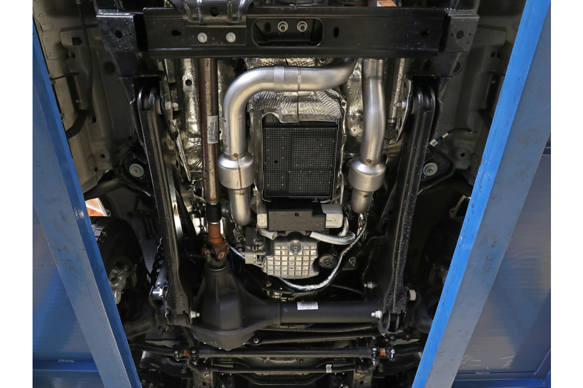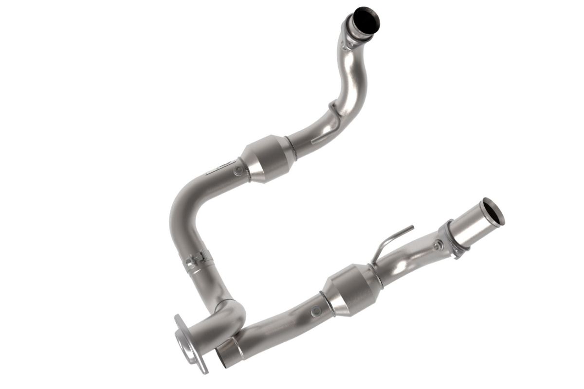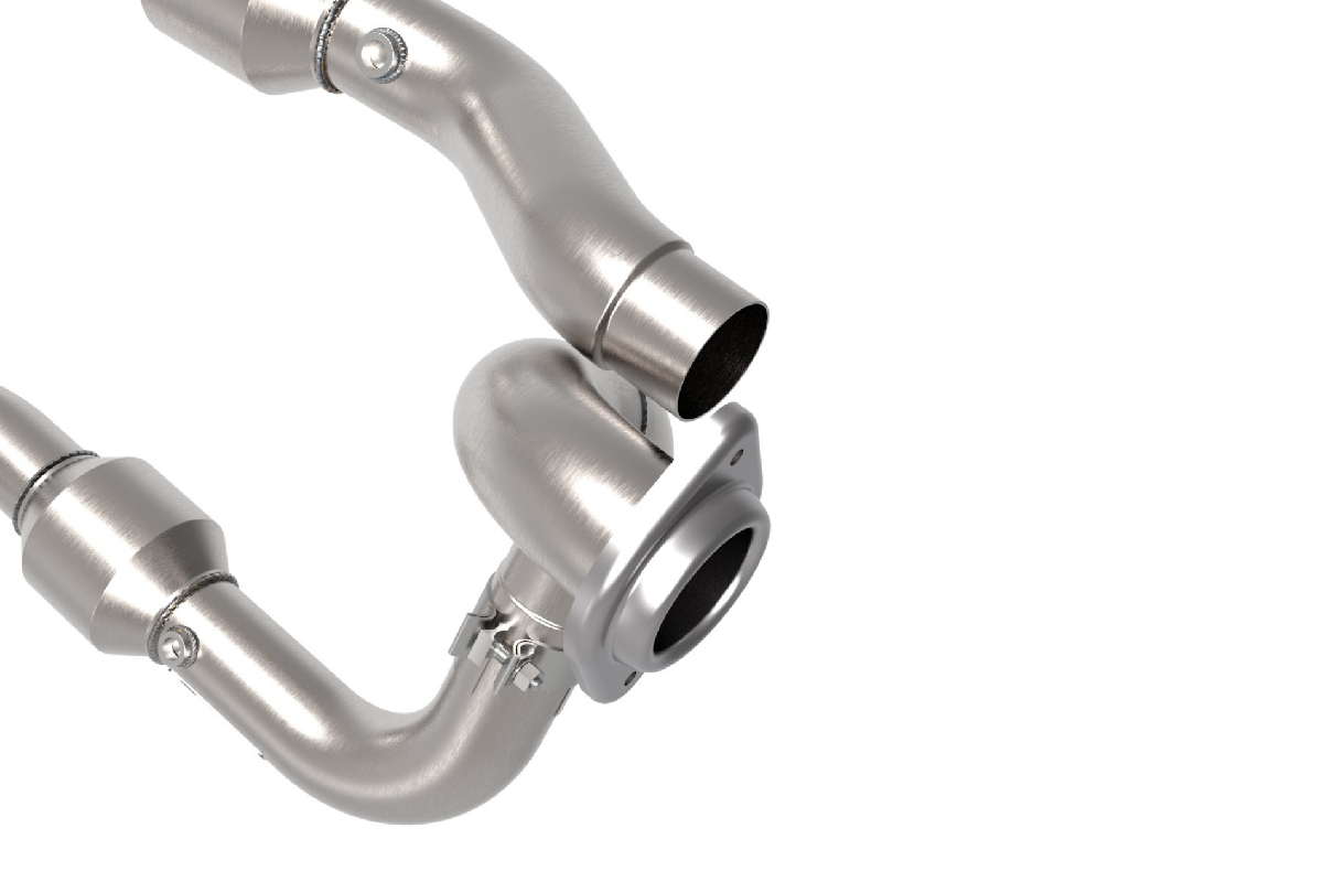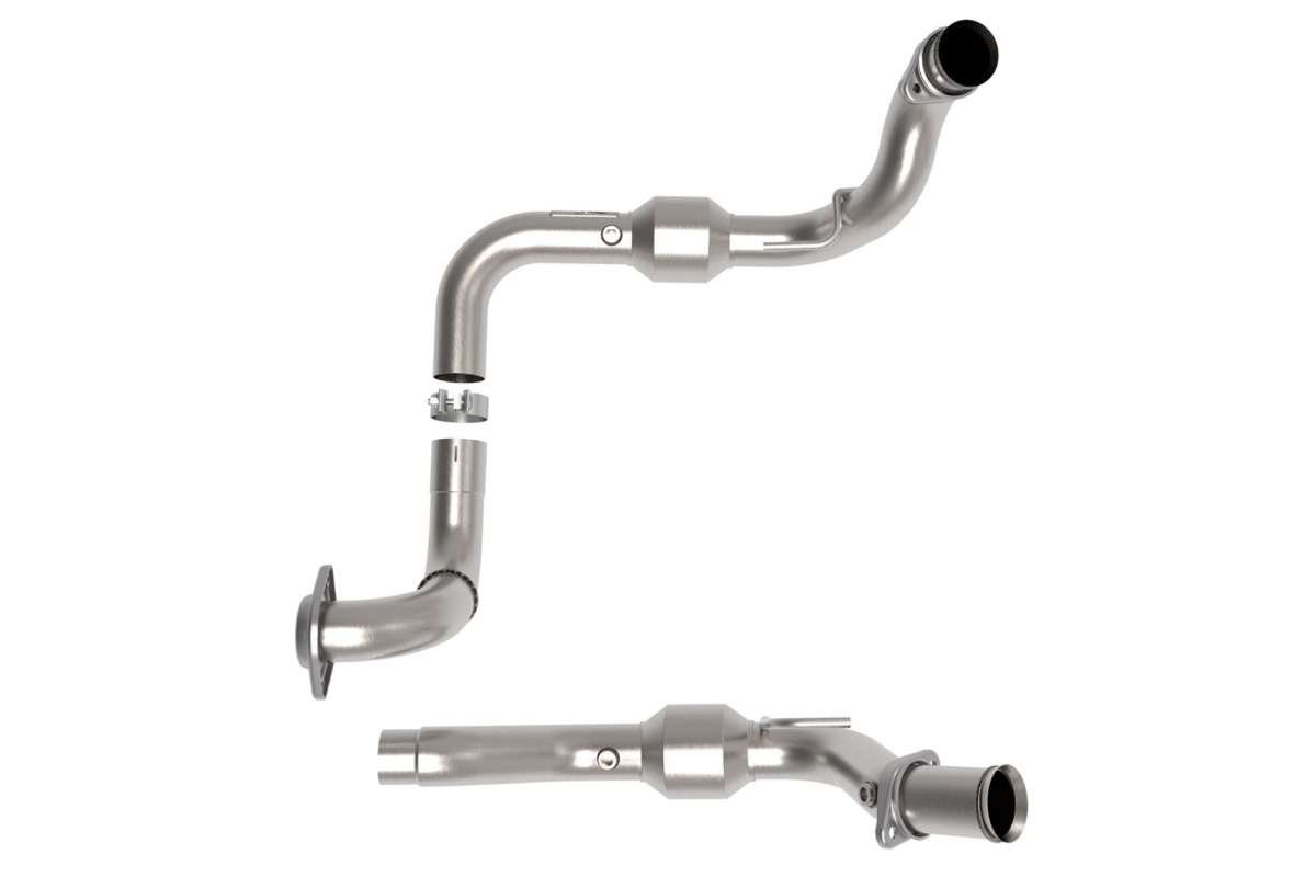 The Twisted Steel Connection Pipes from aFe are crafted from 3-inch mandrel-bent 409 stainless steel tubing to offer the maximum strength and durability possible. What’s more, the entire connection pipe kit has been 100 percent MIG welded for race-proven strength and capability. This system includes dual high-flow catalytic converters, which are less restrictive than Ford’s factory converters to provide optimal flow and subsequent benefits. Factory-style flanges are used for a secure leak-free seal that guarantees the best performance and longevity.