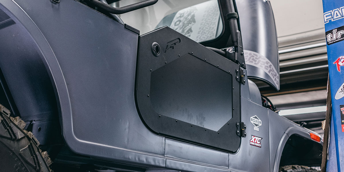 These new Agency Power doors for the Roxor are constructed from high-quality 5052 aluminum, and they come fully assembled for an easy installation. The hinges use the factory bolt location, and once installed, the doors can be lifted off for when you want to go door-less.