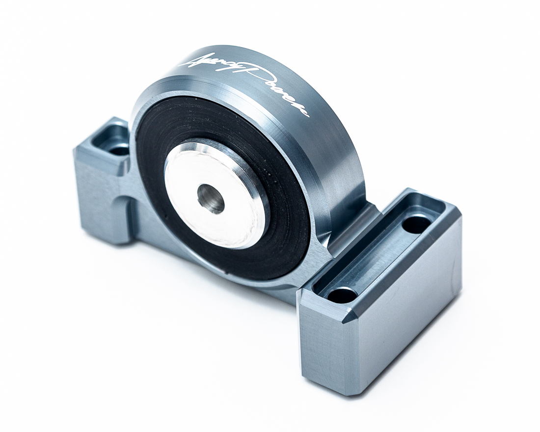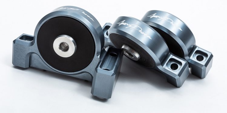 These new mounts are available as a transmission mount and motor mount set, or just a transmission mount by itself. Unlike the weak cast construction of the OEM mounts, these mounts are made from 6061 CNC machined billet aluminum, making these much stronger. Each mount uses a polyurethane bushing with a Shore Durometer of 88 to provide a perfect balance for weekend fun and competition needs. By using a poly bushing, deflection is decreased which means your engine will move around less, especially if you’ve increased the power. The mounts are designed to be an OEM replacement and include everything you need for an easy install.