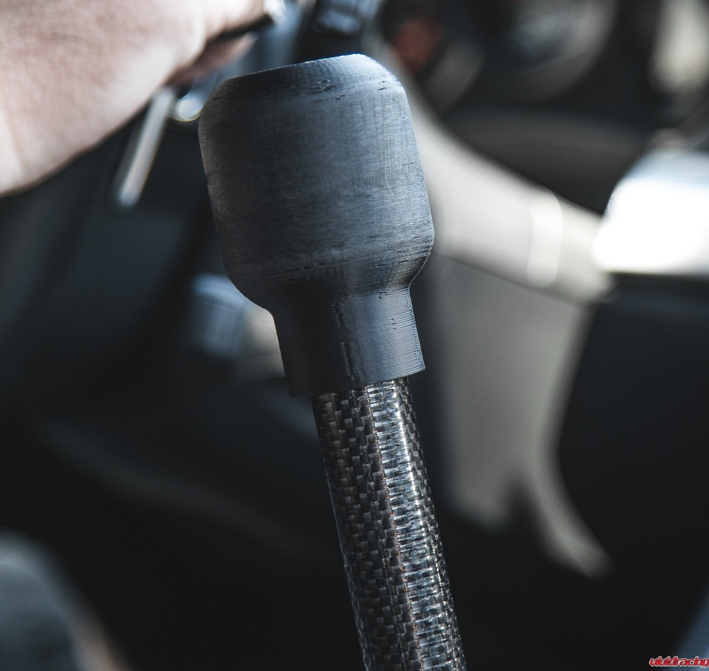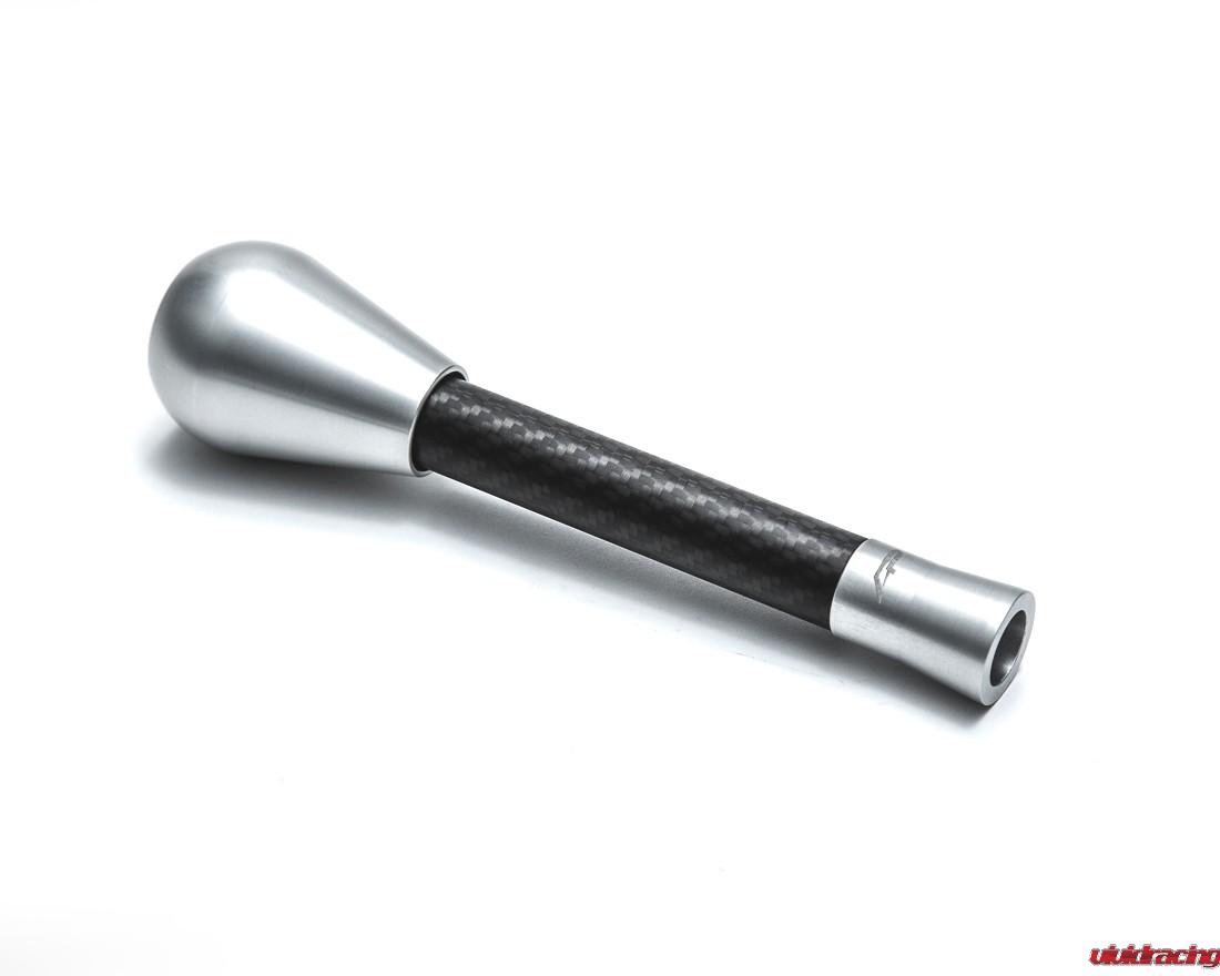 The height of the shifter is increased about 3 inches over the stock PDK lever. This puts the Cup Shifter at a great position in reference to the steering wheel. You now can have quick hand placement from the steering wheel to shift knob to smash through the gears like a pro! Connecting the shift knob to the base is an eloquent carbon fiber tube with a slight gloss finish. This attaches to the base stock utilizing rubber O-rings for a secure fit, however lets you easily disassemble and reassemble. The base stalk is also CNC machined from 6061 aluminum. Clear anodized, the base features a very simple Agency Power AP logo that has been laser engraved. The finish on the base closely matches the factory PDK shifter surround to look OEM.