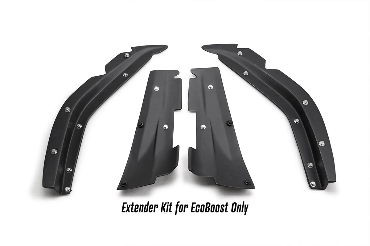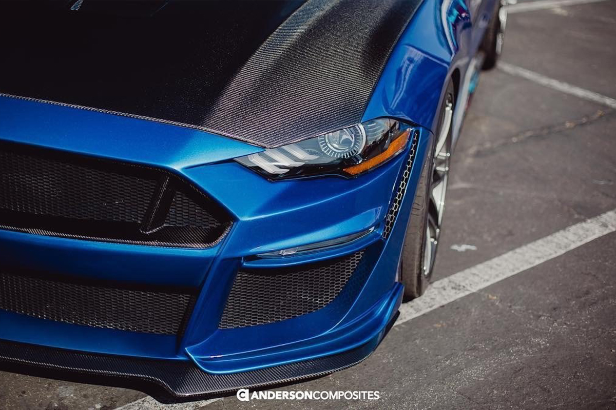 Anderson Composites gives owners the option to upgrade the styling of their front bumper to depict its aggressive sibling. With defined curves, optional carbon fiber accents, and wider fender options the aesthetics are improved and given a menacing look to the Ecoboost and GT models. Along with the two front bumper options are fenders to accompany the larger width bumper.