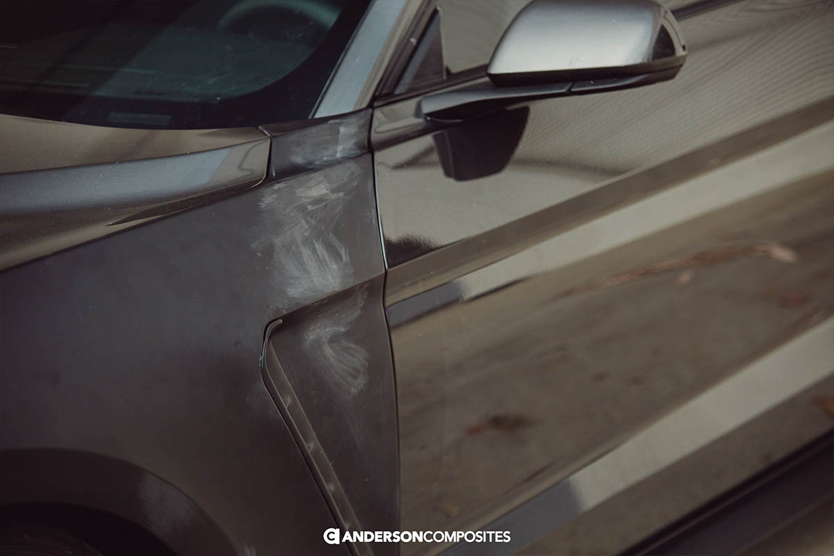 Being as the bumper is an inch and a half wider and two and a half inches taller than the factory, AC-FF18FDMU-ST-GF fenders are required for proper fitment. To ensure a seamless and smooth fitment it is recommended for a professional to install the body components as most body shops might not have experience working with fiberglass or carbon fiber. The all-new Anderson Composites GT500 style body parts are the goto option for those wanting something with unique styling.