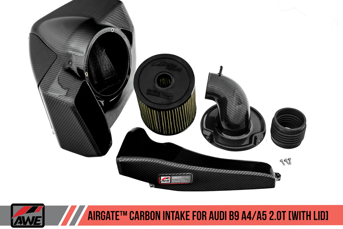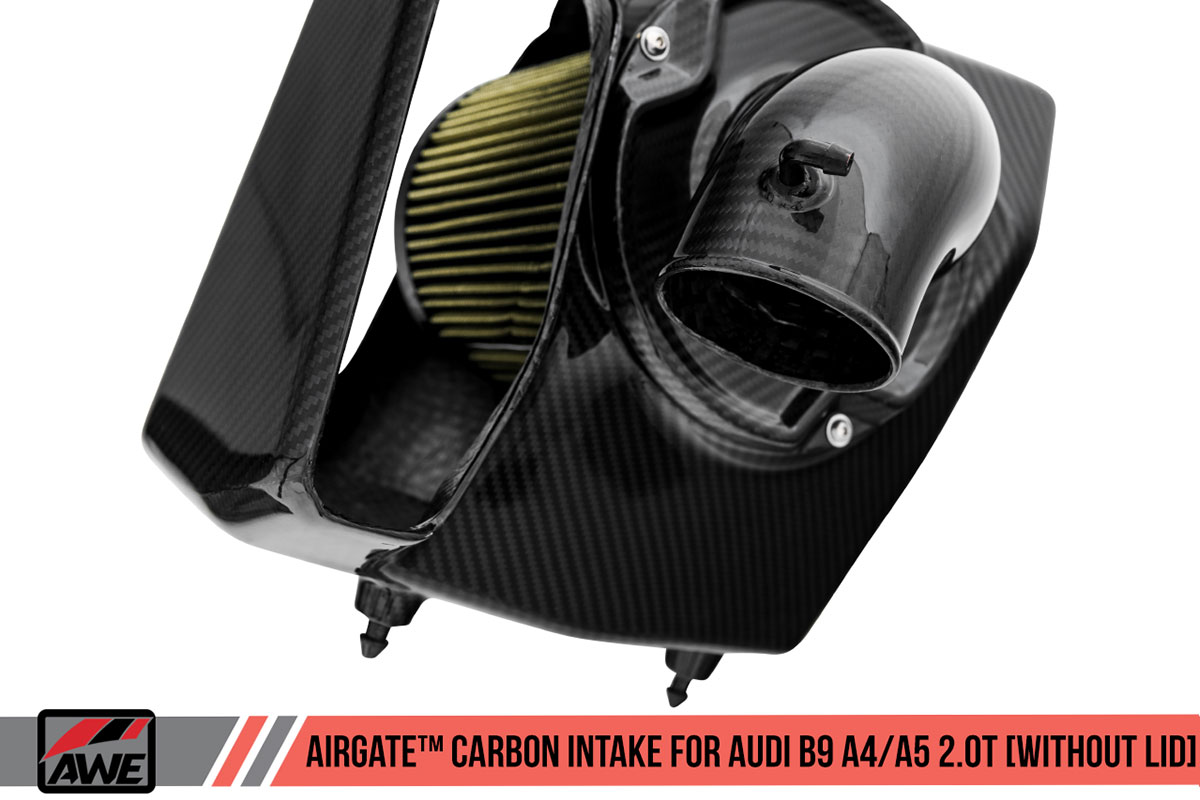 Audi enthusiasts know the S4/S5 are fast cars with their twin-turbo 2.9L V6. Unfortunately, the high cost of the S4/S5 pushes a lot of Audi enthusiasts toward the standard A4/A5. Luckily, the EA888 2.0T engine under the hood of the A4/A5 is quite potent, and with some bolt-on modifications such as intake, exhaust, and tune, it can step on the toes of the S4/S5. For those who want the best intake possible, AWE is the go-to company. Their new AirGate carbon fiber intake for the A4/A5 is the perfect solution anyone looking for a small bump in power and an increase in induction noise.