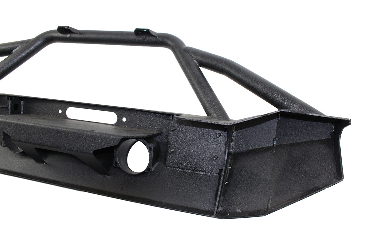 The entire bumper has a tough black textured powder coat which will last longer than ordinary paint in off-road conditions. This bumper includes all the hardware necessary and even includes two d-rings, so you won’t have to go out and buy those separate afterward.