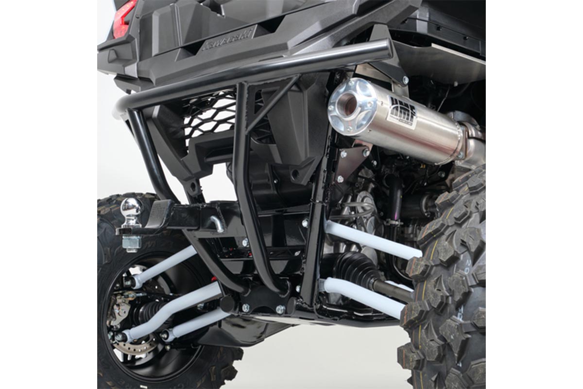 Utilizing .095” mandrel-bent steel tubing provides immense durability which gives owners the option to mount a 4,500 lbs. rated winch. Not having to worry about getting too stuck eases the mind and lets you soak up maximum amounts of fun with added security. The rear bumper features a hitch receiver to hook up small trailers or hitch-mounted accessories.