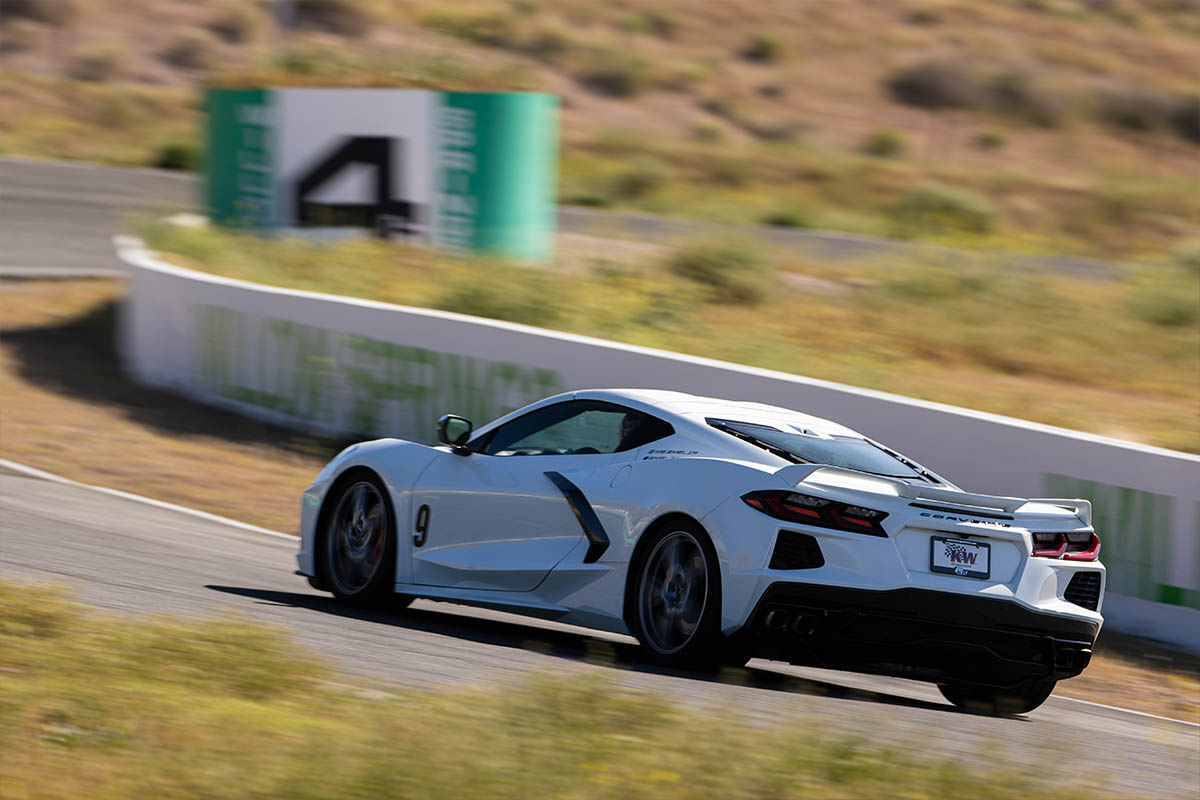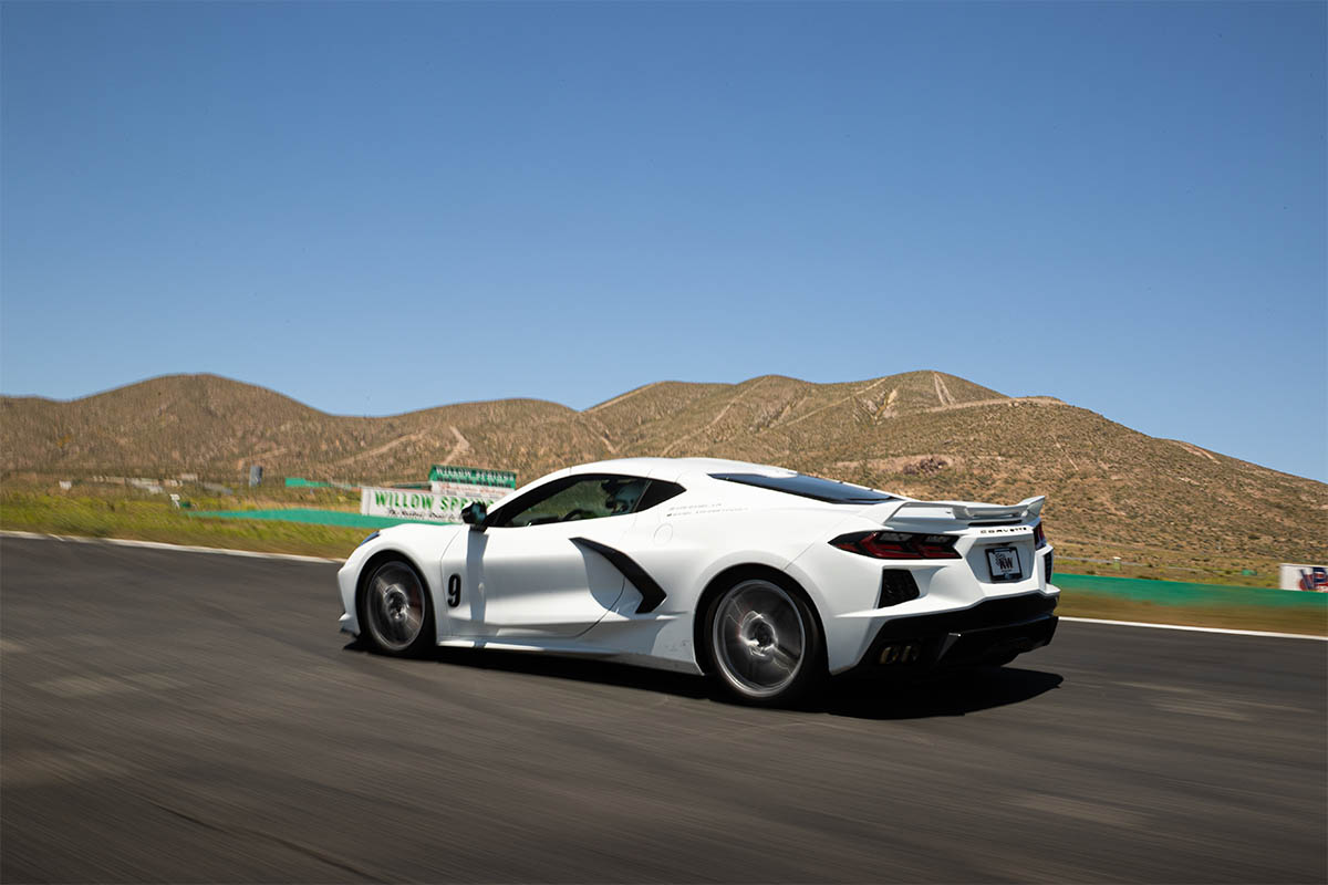 Although the vehicle performs well around the track, the suspension doesn’t offer the adjustability to support this type of driving. From the factory the C8 permits slight height adjustment but does not offer rebound or compression control. This means the driver is stuck with whatever Chevrolet presets from the factory.