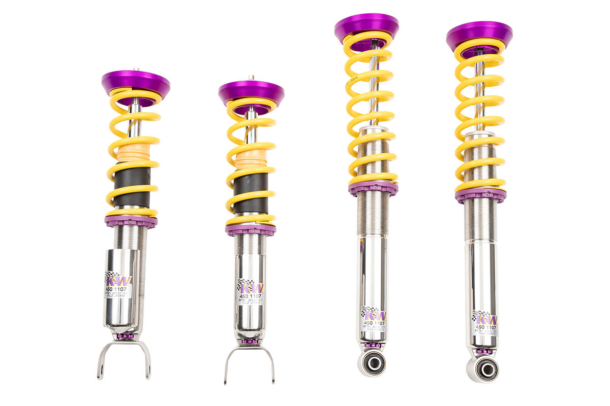 Being apart of the inox-line from KW, these coilovers feature the ultimate rust prevention material. Along with the additional longevity, the Variant 3 have trapezoidal threads to ease the load. This design prevents the collars from getting stuck and require less strain to adjust the height.