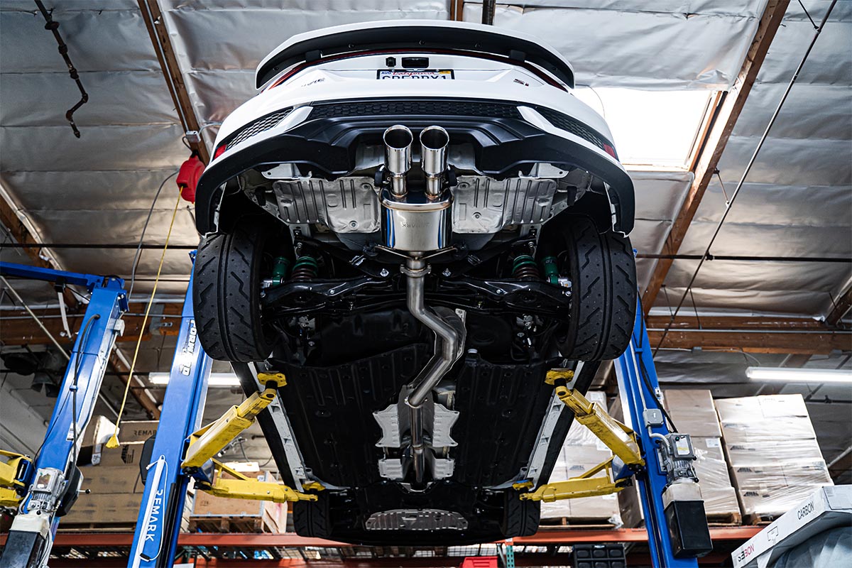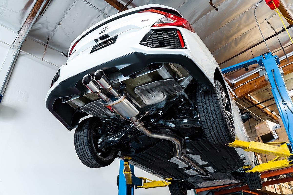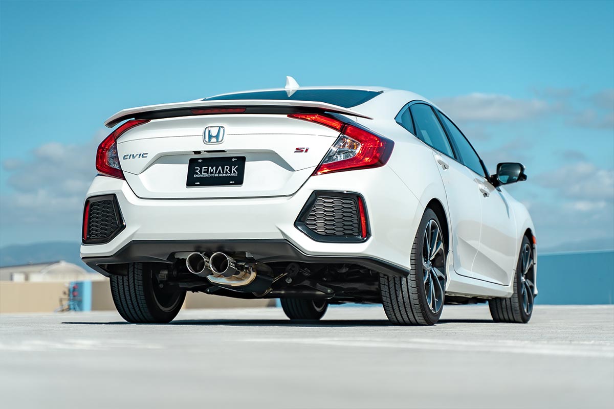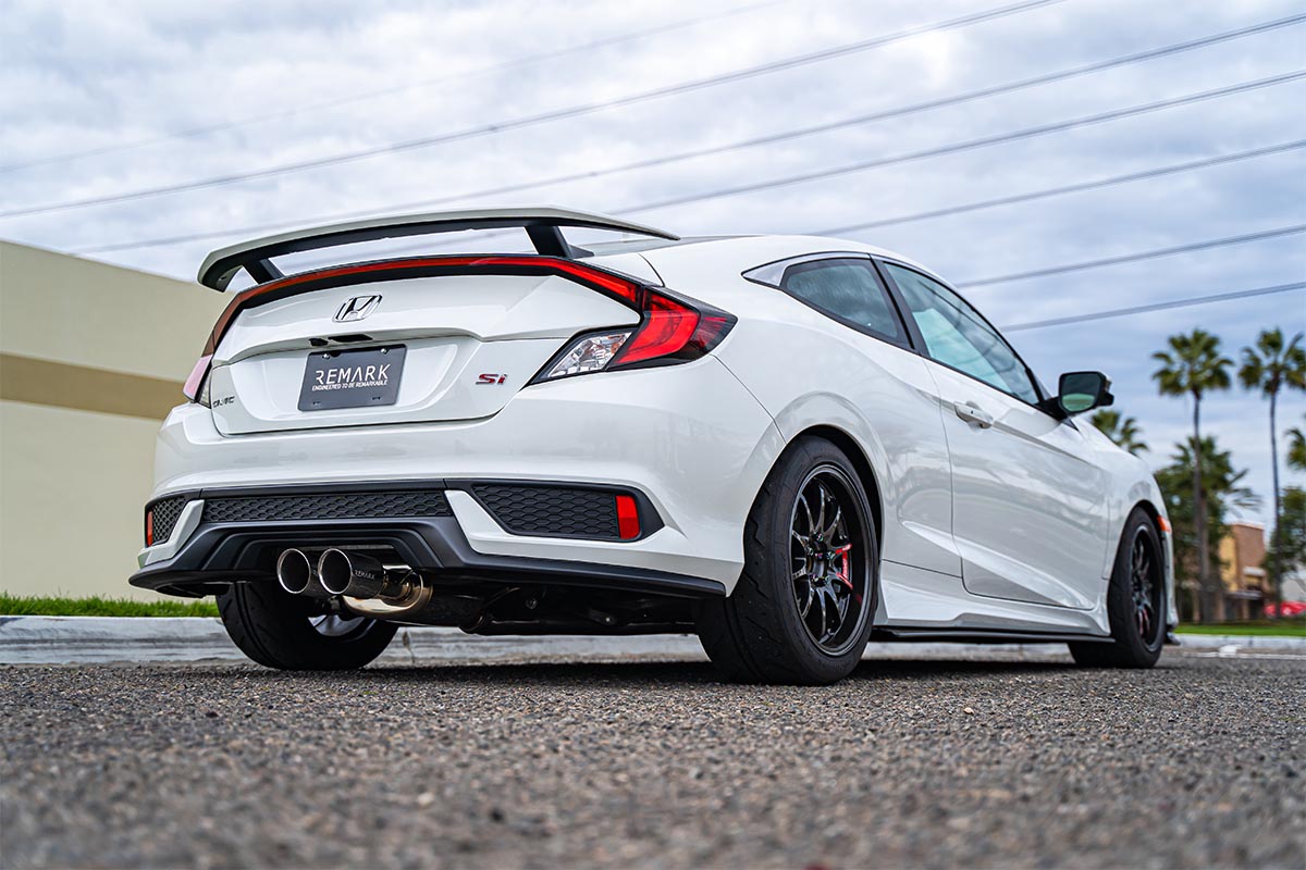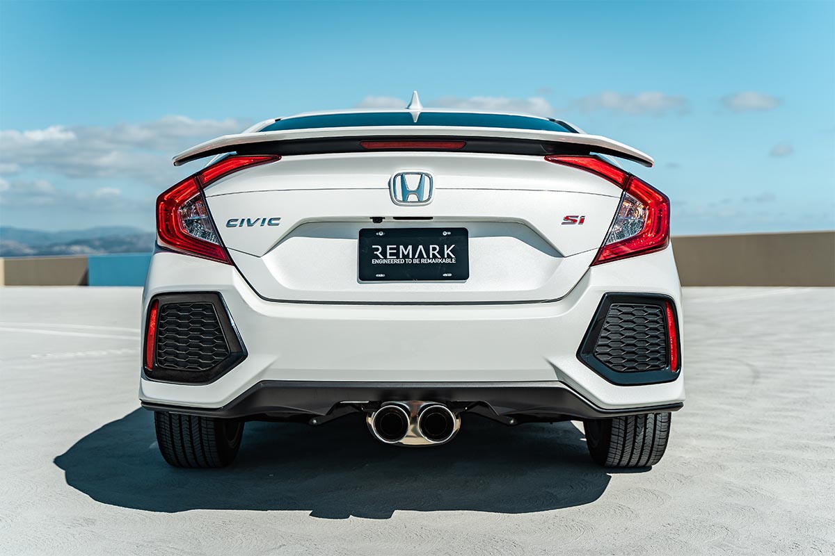Since the factory exhaust was not cutting it, Remark developed a catback exhaust system for the FC1 Civic Si Sedan and FC3 Si Coupe. Constructed of 16-gauge T304 stainless steel tubing, this exhaust system significantly reduces restriction. This is achieved by the mandrel-bent 3-inch piping which allows the gasses to flow freely.
