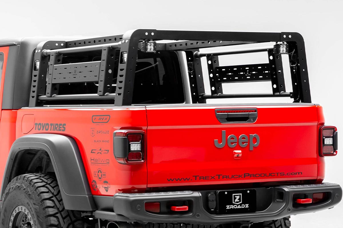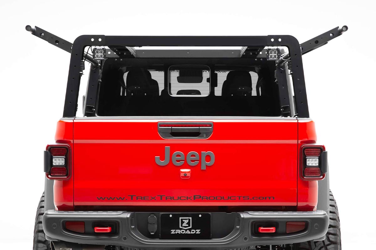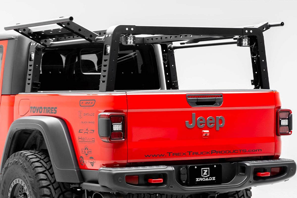 ZROADZ developed an overland rack with swinging side gates for the 2019+ Jeep Gladiator JT. This new overland rack provides massive utility benefits to safely secure extra equipment and free up vital bed space. Offering lightweight aluminum swinging side gates, the doors can hang up to 30-pounds.