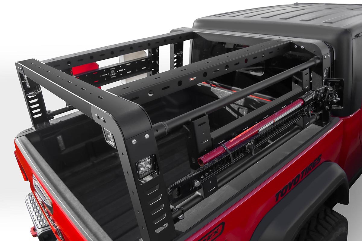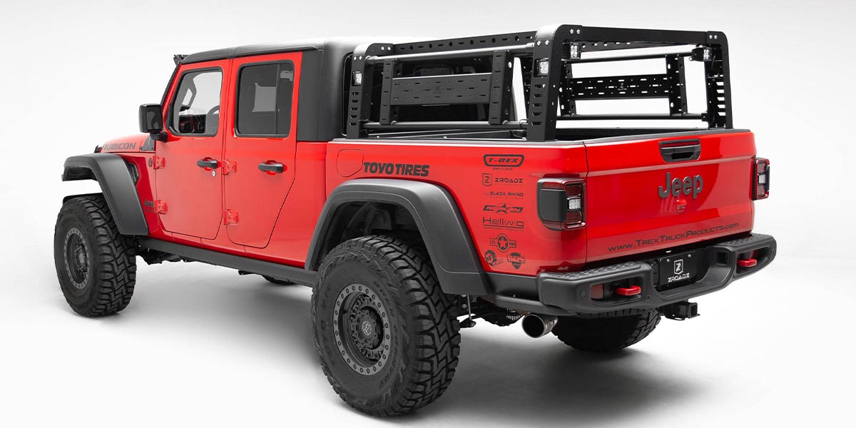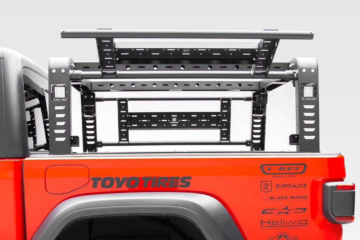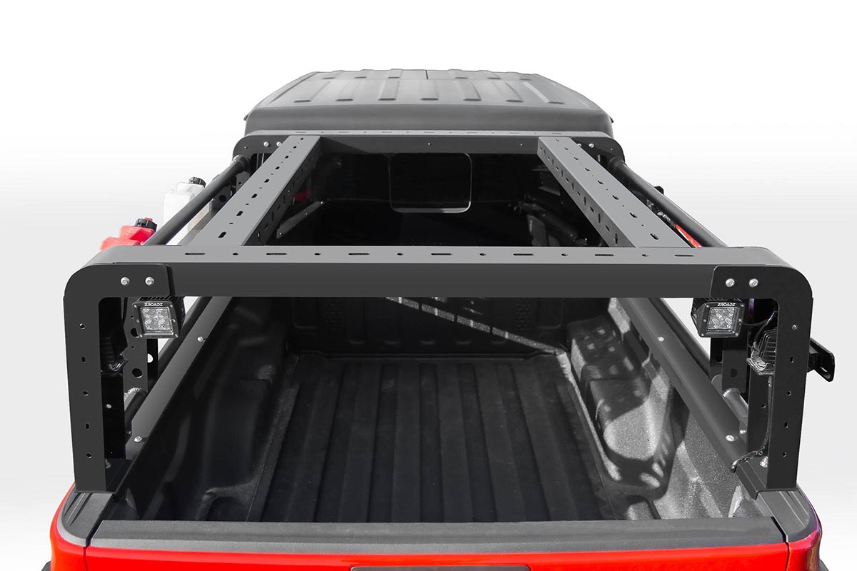 ZROADZ developed an overland rack with swinging side gates for the 2019+ Jeep Gladiator JT. This new overland rack provides massive utility benefits to safely secure extra equipment and free up vital bed space. Offering lightweight aluminum swinging side gates, the doors can hang up to 30-pounds.