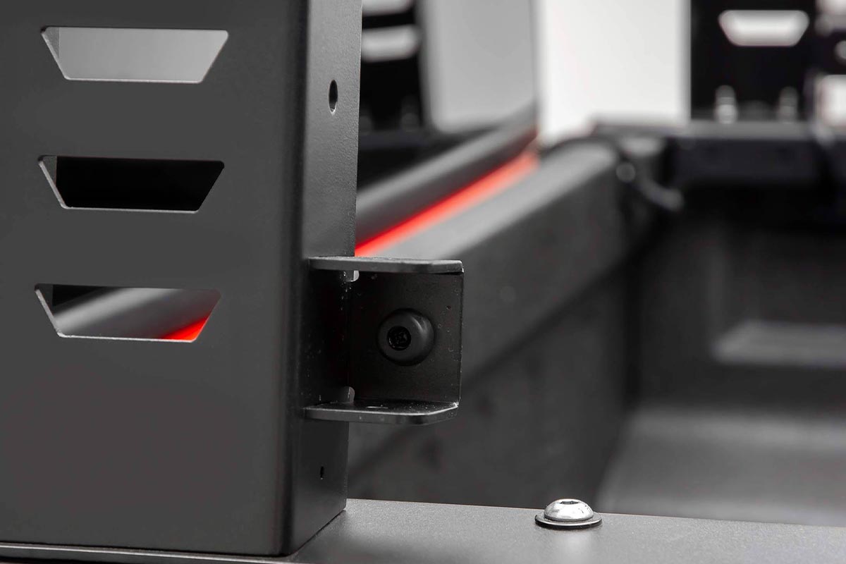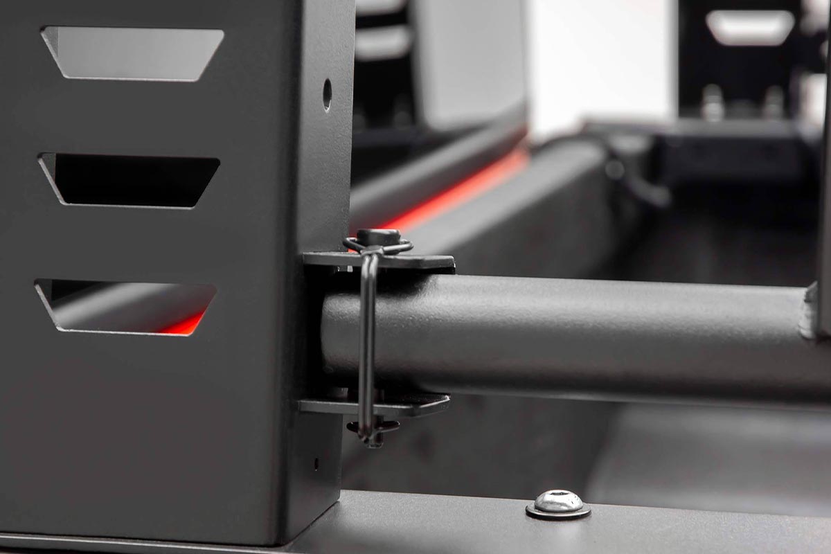 Constructed of steel for the primary framing, the secondary support consists of aluminum to reduce overall weight without sacrificing durability. The rack can support up to 800-pounds of load and 400-pounds while off-roading. To provide a maintenance-free install, this rack features self-lubricating nylon bushings for smooth opening and closing of each feature.