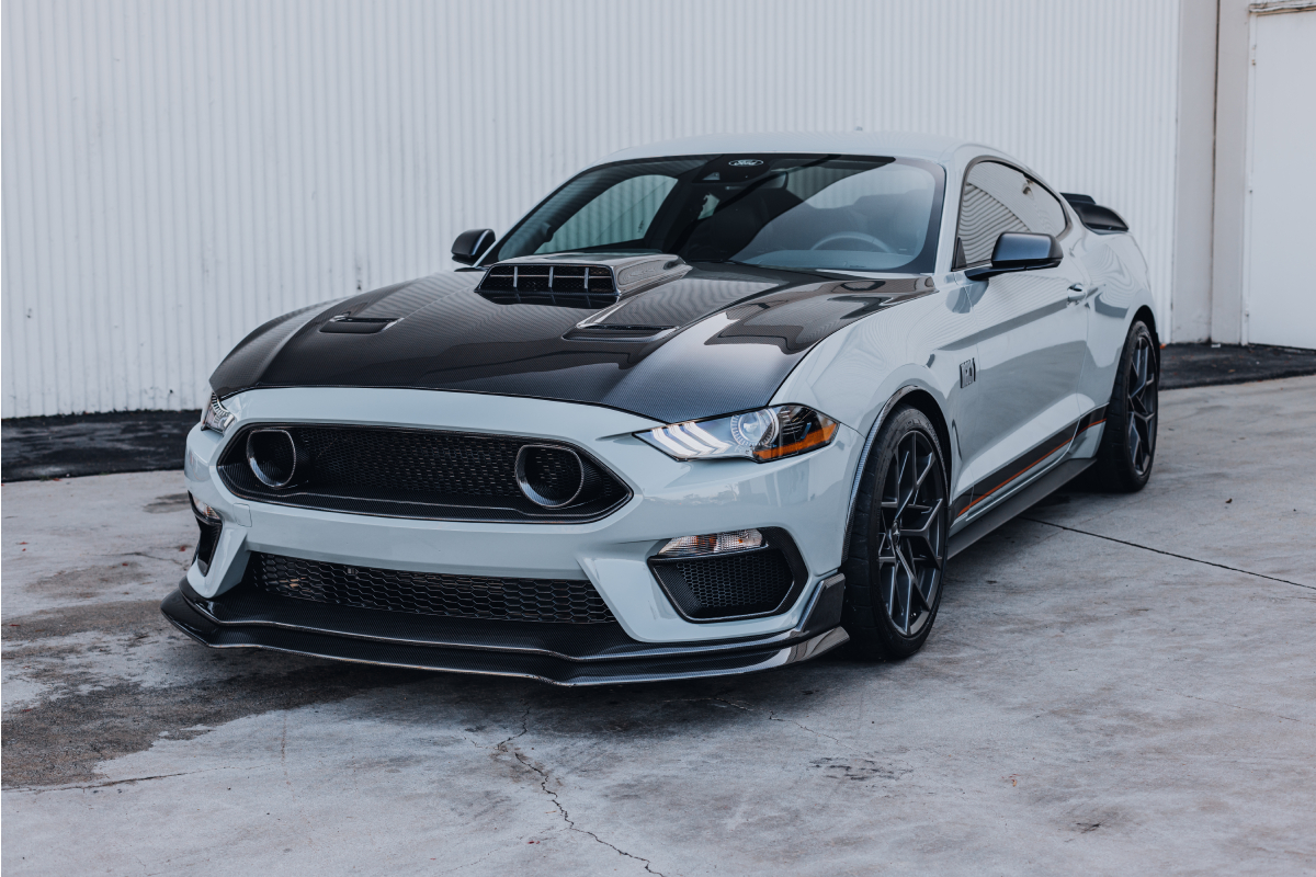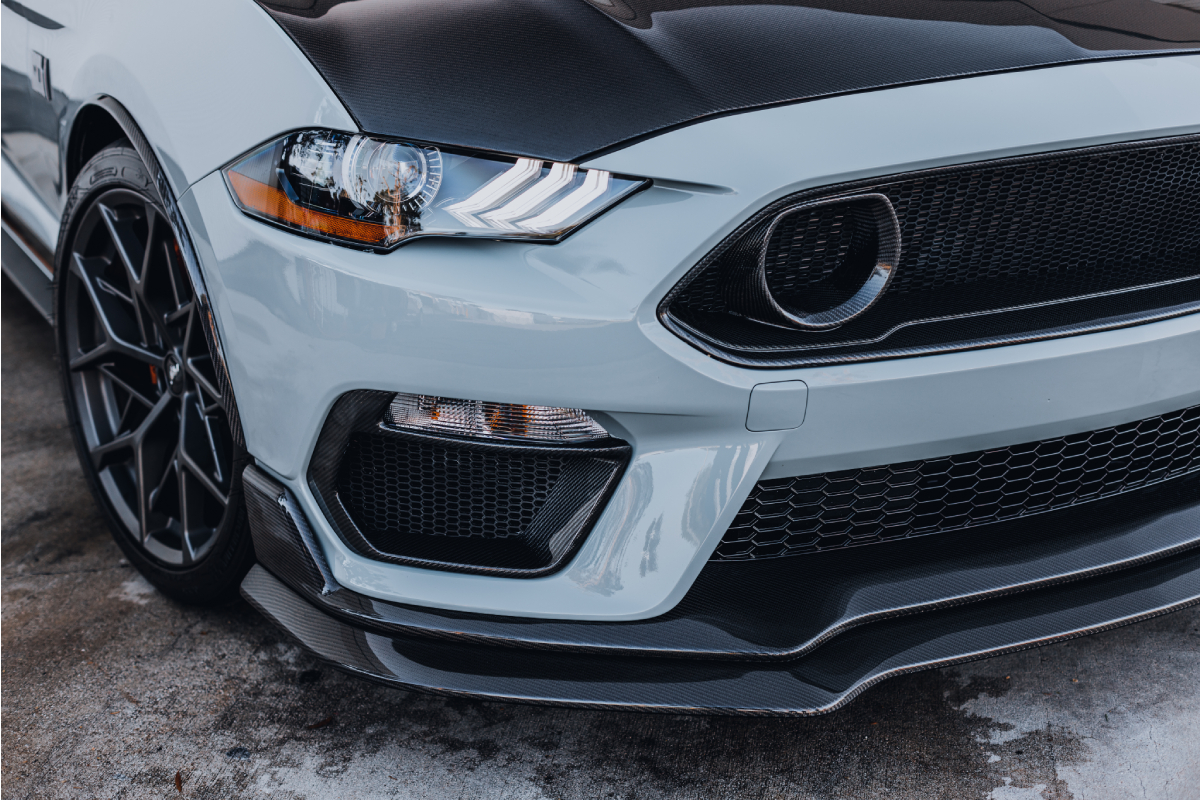 The Mach 1 Mustang is essentially taking the place of Ford’s GT350, representing the top tier of non-Shelby Mustangs. The new sixth-gen Mach 1 features a very powerful 5.0-liter Coyote V8 engine with upgraded suspension and a slew of performance upgrades. Along with the added performance and appearance options, The Blue Oval changed the design of the front end to better distinguish it from the GT350 lineage. If you are a Mach 1 owner looking to take its aesthetic even further, Anderson Composites has what you need. With that said, Anderson Composites is proud to introduce its new carbon fiber components for the 2021-2022 Ford Mustang Mach 1.