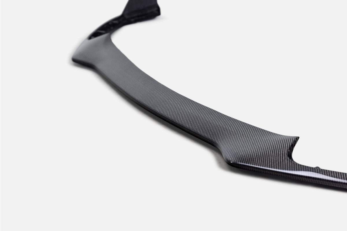 • Carbon fiber front spoiler (SKU # AC-FL21FDMUM1-OE) and splitter (SKU 3 AC-FL21FDMUM1-HP) provide enhanced downforce to the front end and are available separately