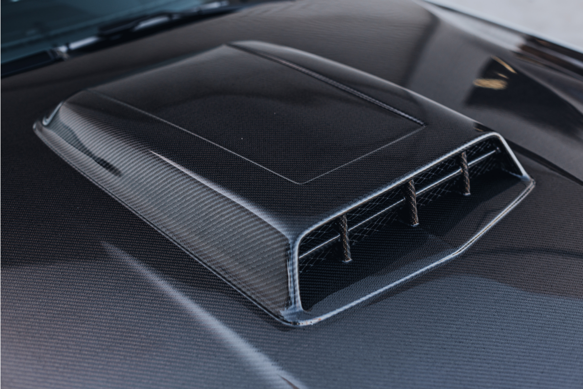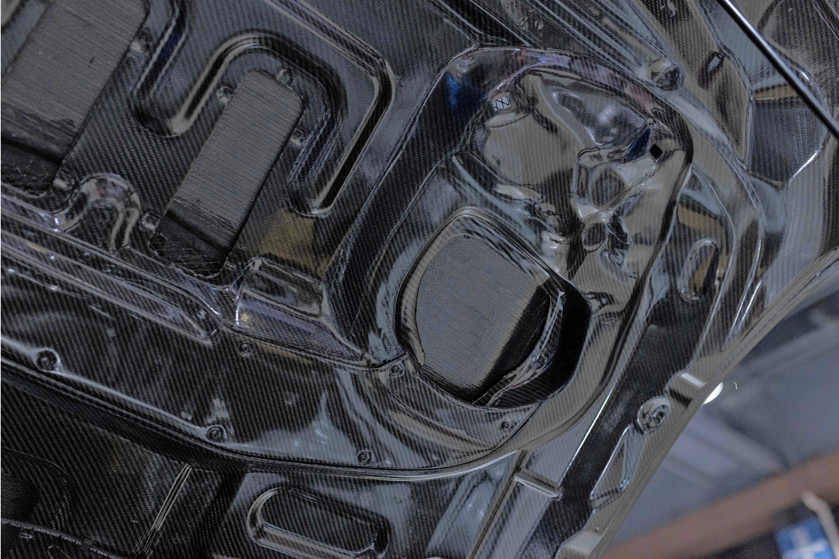 - Carbon fiber “skeleton” bonded to underside of carbon fiber hood – reduced weight
