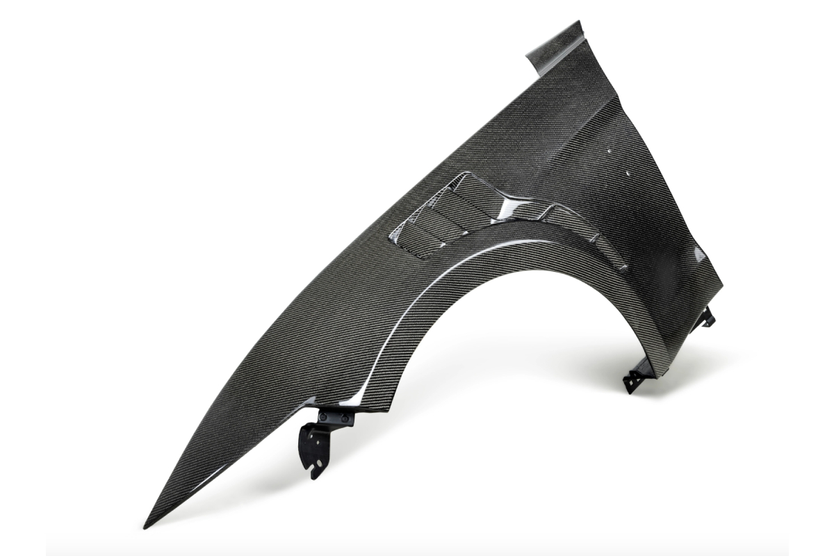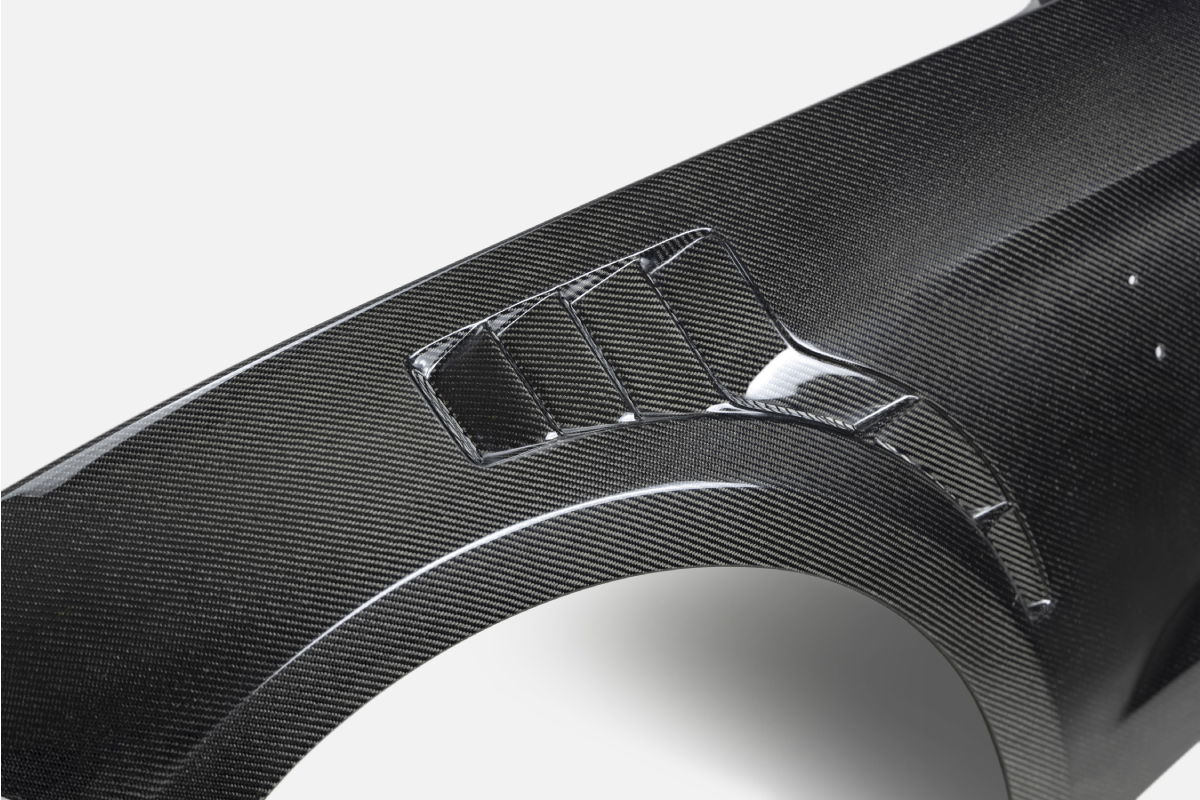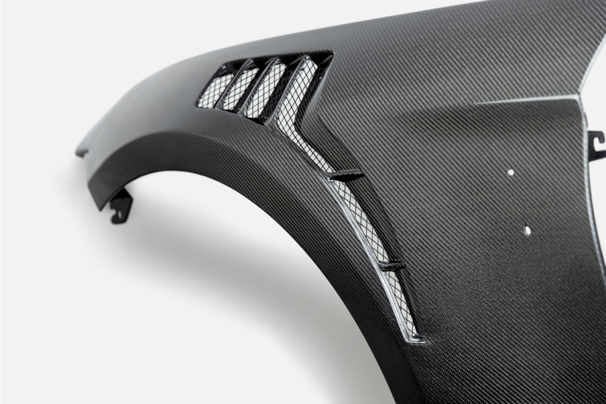The Anderson Composites GT500 fenders are crafted from high-quality 3k, 2×2 carbon fiber twill fabric and high-grade marine resin with UV inhibitors. The vacuum infusion process used to manufacture these pieces provides the best fabric-to-resin ratio in order to deliver the best fitment and finish possible. These carbon fiber fenders have great show-quality looks with a high-luster finish and are also about five pounds lighter than the stock fenders!