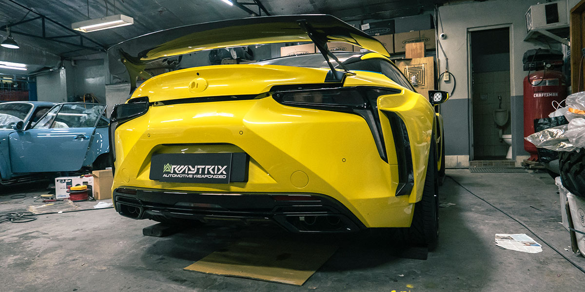 The LC500 is designed to be a unique grand touring coupe with enough performance to take on cars from companies such as BMW and Mercedes Benz. It’s not intended as a full on sports car like the 911, and such lacks the sound associated with a proper performance car. In stock form, the 5.0L naturally aspirated V8 doesn’t make much noise. Lexus kept the exhaust pretty quiet to appeal to a wider range of buyers. As enthusiasts, we want to hear our car as we put the hammer down on twisty roads or open highways. Luckily, Armytrix has a solution for LC500 owners.