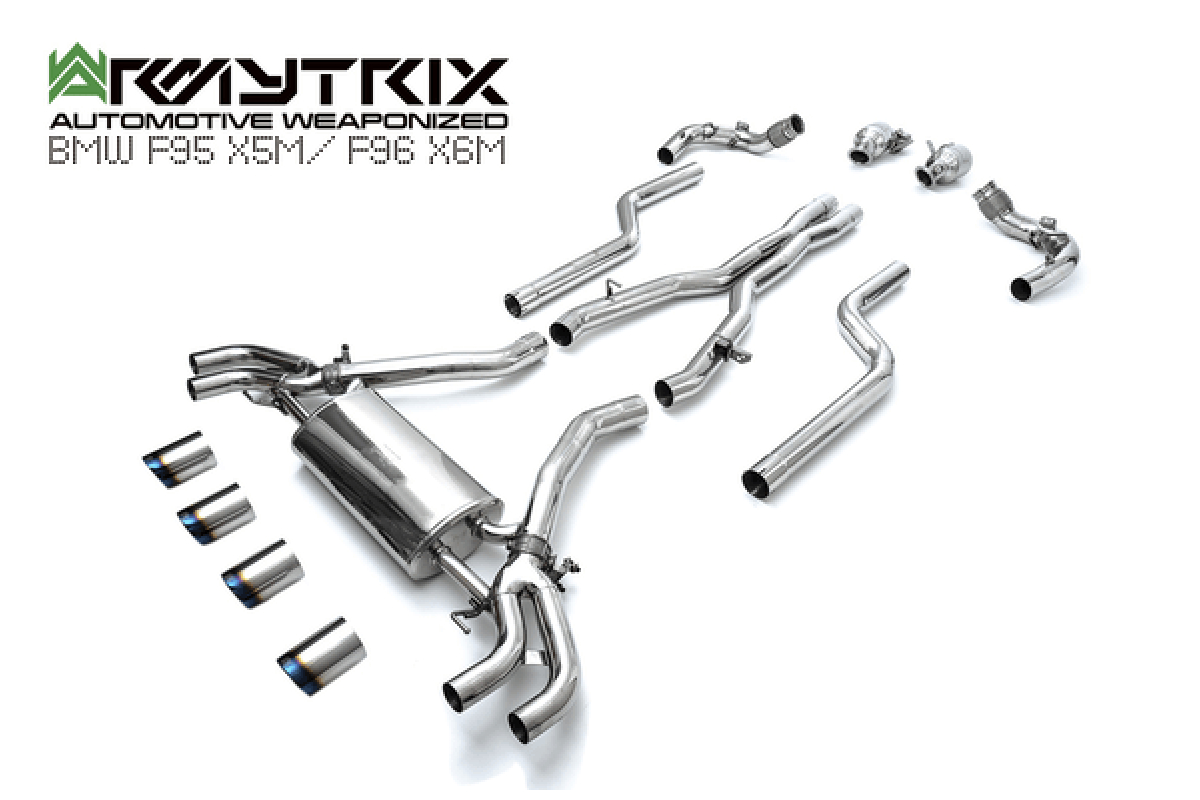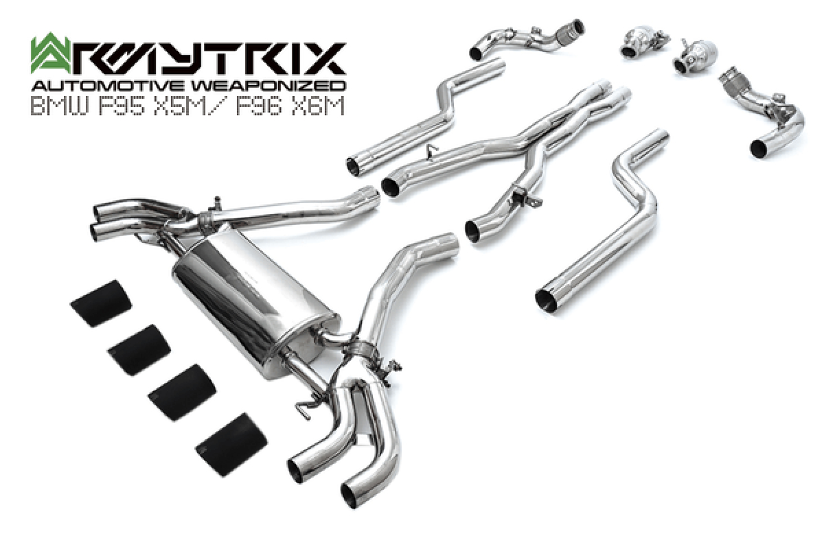 Despite their size and weight, the BMW F95 X5M and F96 X6M are the ultimate expression of a BMW SUV. The twin-turbocharged V8 engine produces over 600 horsepower and 553 pound-feet of torque! The racetrack-proven cooling system in the M TwinPower Turbo V8 engine includes four water pumps, six radiators, and a dedicated transmission cooler to keep temperatures down and things running smoothly. While both the X5M and X6M excel straight from the factory, the performance experts at Armytrix have developed a number of exhaust parts that take things up a notch or two.
