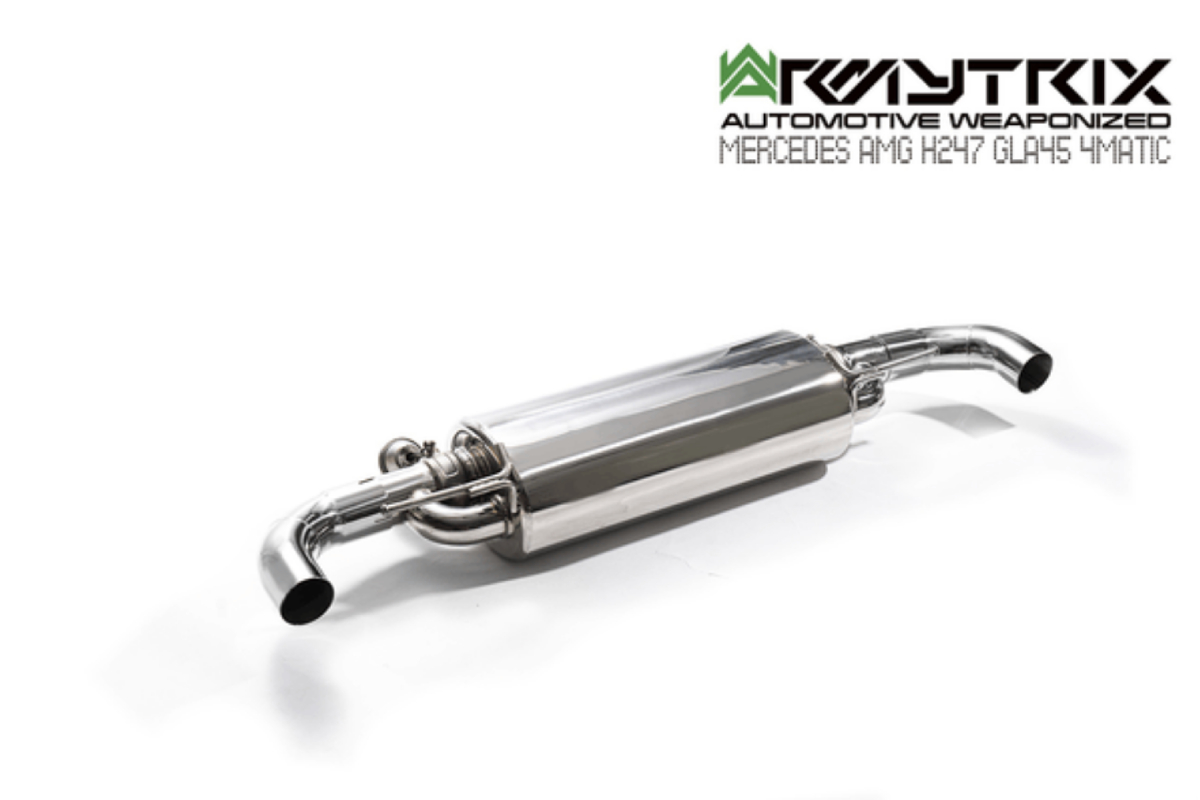 The highly popular Armytrix Valvetronic Exhaust System is now available for 2020+ Mercedes-AMG GLA45 / GLA45 S 4Matic models. Armytrix has a solid reputation for bringing the finest exhaust upgrades to the aftermarket industry for a wide range of makes and models. This system for the GLA45 AMG consists of a Cat-Back Valvetronic Exhaust with High-Flow Performance De-Catted Downpipe with Cat Simulator. Skip down to the video at the end of this post to revel in the pure exhaust sound this system brings with both opened and closed valves. Watch as it does a drive-by with the tantalizing pops and crackles (especially in between shifts) that enthusiasts crave.