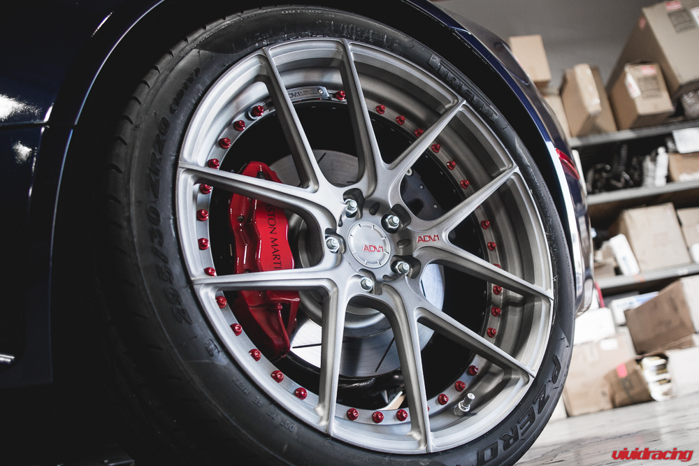 Our customer that owns this beautiful Aston Martin Vantage S came to us for a new set of wheels. We set him up with a set of 20×9 & 20×11 Forged ADV1 MV2 SL Series wheels with red hardware/lettering wrapped in Pirelli P Zero 255/35/20 FRONT and 295/35/20 REAR. The new look defiantly gives the Vantage a much more aggressive appearance that is sure to turn heads where ever he goes.