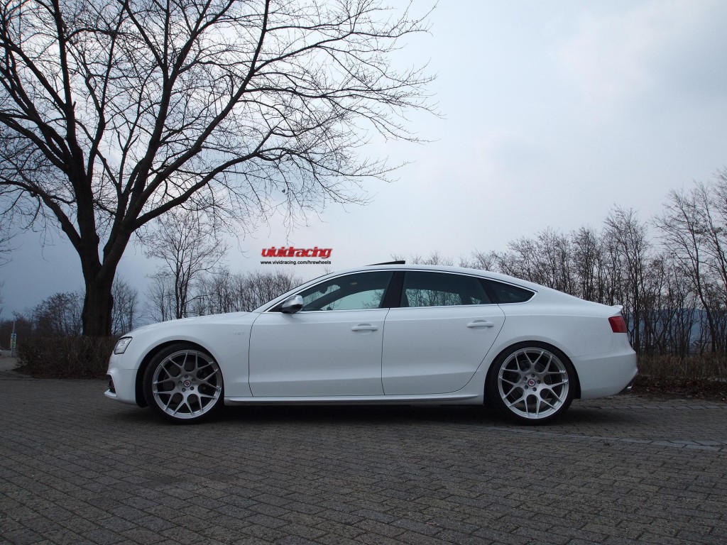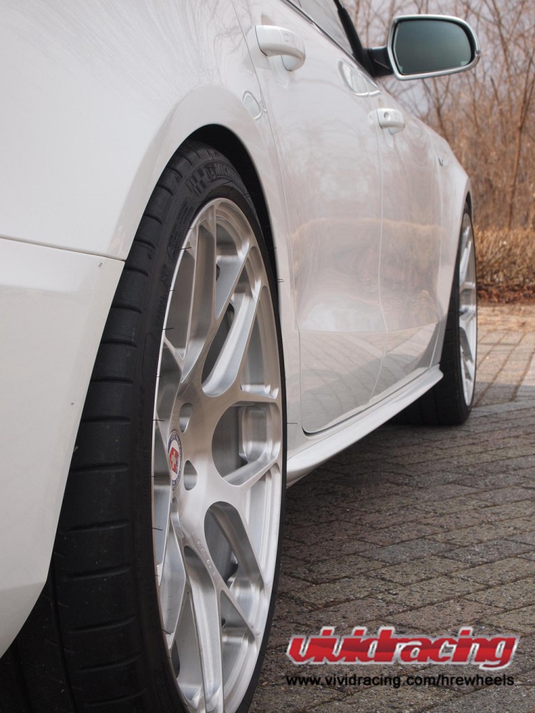 A customer of ours just forwarded over these photos of his Audi S5 Sportback with some of the new Conical HRE P40SC Wheels. Located in Japan, this combo of white and brushed is a real standout. These 20×10 wheels at all 4 corners are done in a brushed/clear finish for the 5×112 bolt pattern. To clear the upgraded Brembo GT brake systems, the front wheels were done in a 28mm offset and the rear a 21mm offset. The slight concave wheel design looks very elegant against the white sporty sedan. Want to see more, check out HRE WHEELS HERE.