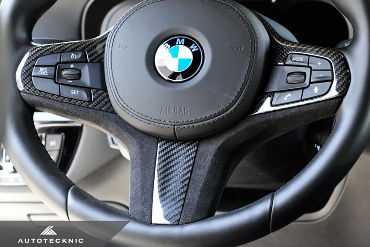 With the newest generation of large body BMW cars becoming increasingly popular, it was only a matter of time before tons of cool aftermarket parts started popping up. AutoTecknic, a globally recognized aftermarket parts manufacturer, has been developing new carbon fiber parts for these new BMWs, most of which are exterior cosmetic parts, but they also offer lots of other cool carbon parts. Recently they released their shift paddles for the BMW G30 and now they’ve just released their new carbon/Alcantara steering wheel trim.