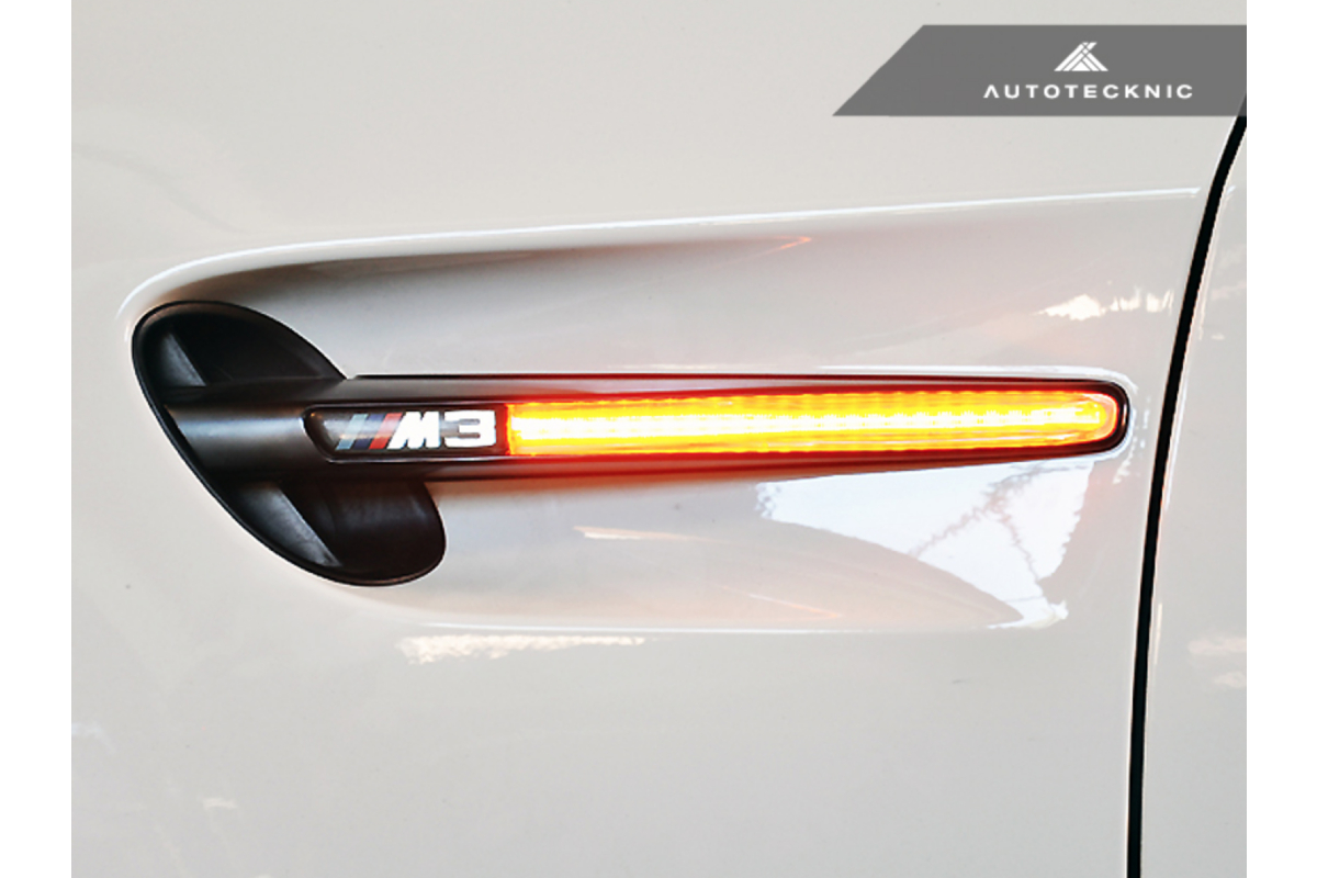 AutoTecknic has just released its new LED Fender Turn Signal for the BMW M3. This is a complete replacement turn signal for the E90, E92, and E93 models. Utilizing 24 high-powered SMD (Surface Mounted Device) LEDs, this upgraded fender turn signal will help increase visibility when changing lanes. The color-matching LEDs can also enhance the overall aesthetic of your BMW M3. Choose from an Amber Orange colored turn signal or an Ultra White option – the latter of which is for off-road use only. Installation is a breeze as this product comes as a plug-and-play replacement that will not draw any error codes. Customers can also opt to purchase the 24 SMD LED Fender Turn Signal with the Glazing Black or Stealth Black Fender Trims as a combination set for the E9X M3.