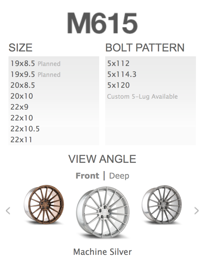 Take a look at the gallery below featuring some beautiful rides fitted with M615 wheels. Available colors include machine silver, polished liquid bronze, and brushed stainless. Be sure to also check out our entire collection of Avant Garde wheels here.