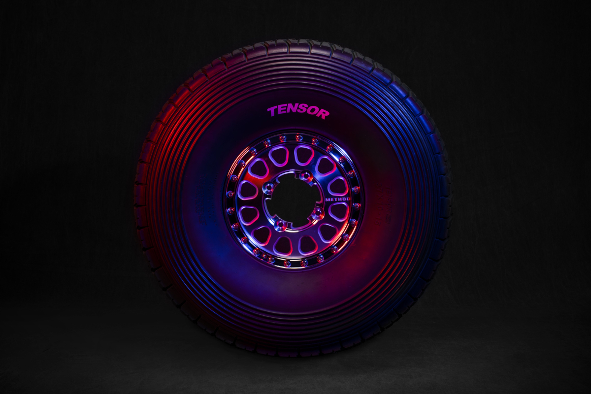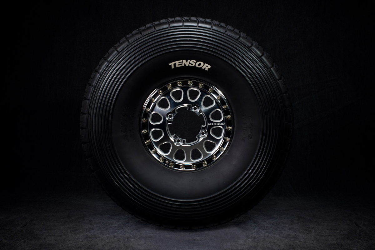 Weighing only 50 pounds, Tensor’s 37″ DSR measures 10 inches wide and is available for both 15″ or 17″ wheels. For example, a 37″ Tensor tire paired with a 15″ Method Race wheel can weigh as little as 70 pounds, and is approximately 50 percent lighter than a comparable 37″ race wheel/tire package.