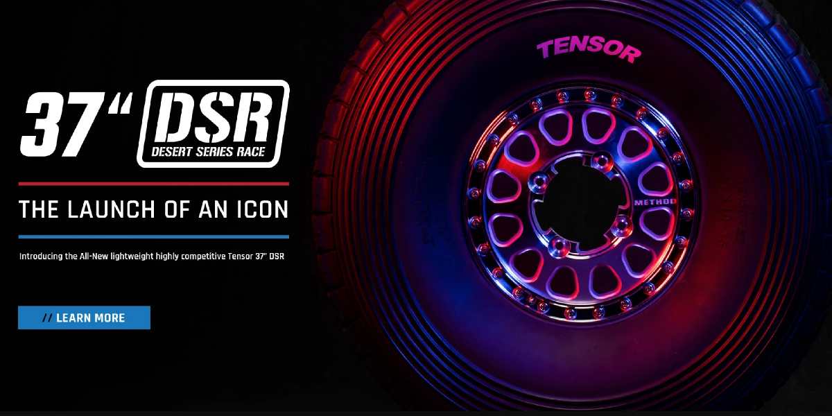The 37″ DSR is a purpose-built racing tire designed primarily for race-specific buggies and pre-runners. Tensor DSR Tires offer race-proven performance at a larger size for those who demand the very best and nothing less. Check out the video below to get a closer look at this all-new tire from the experts at Tensor.