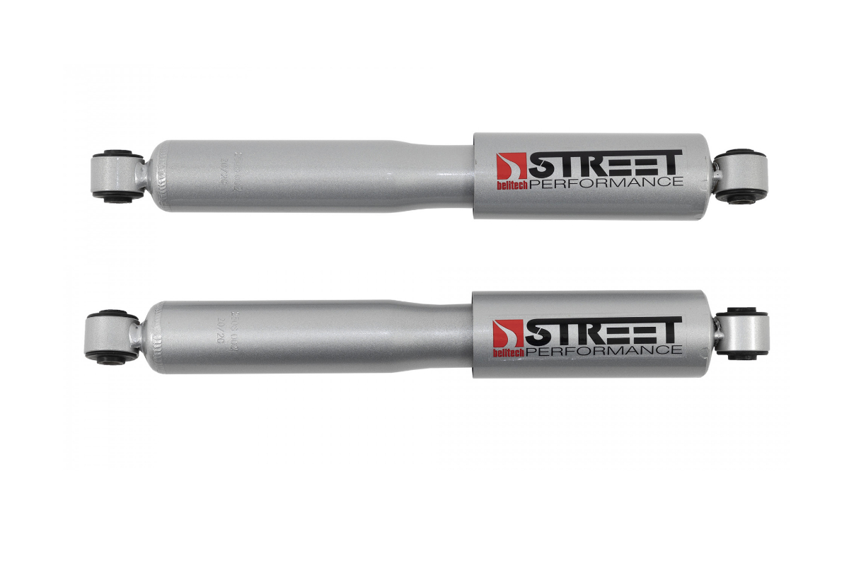 The Belltech Street Performance Lowering Shocks were engineered to provide a premium ride quality and can also be purchased separately. When designing these, Belltech also placed an emphasis on the low-speed compression characteristics of this shock absorber, which is responsible for controlling your sport truck’s pitch and roll, dive and squat to help keep you confident and in control. The “Progressive” rebound tuning will complement large aftermarket wheels, keeping the ride smooth but firm and in control.
