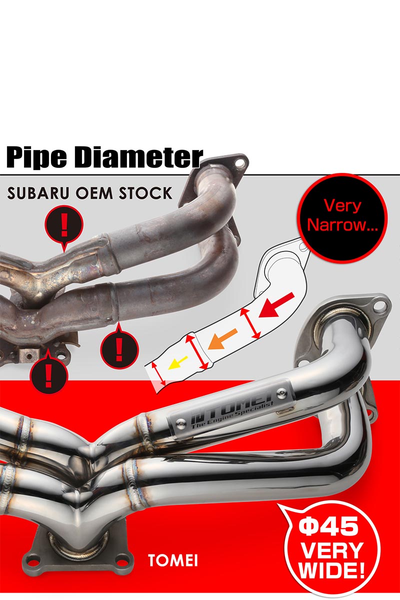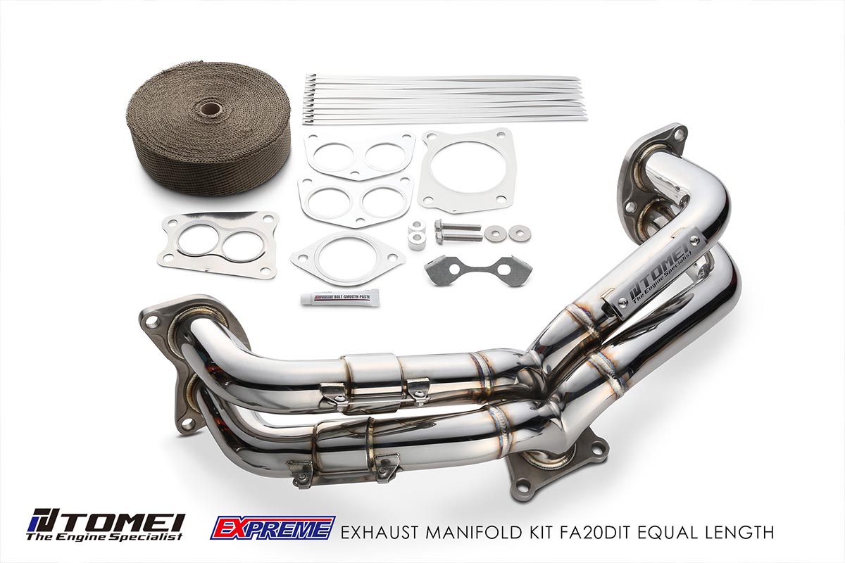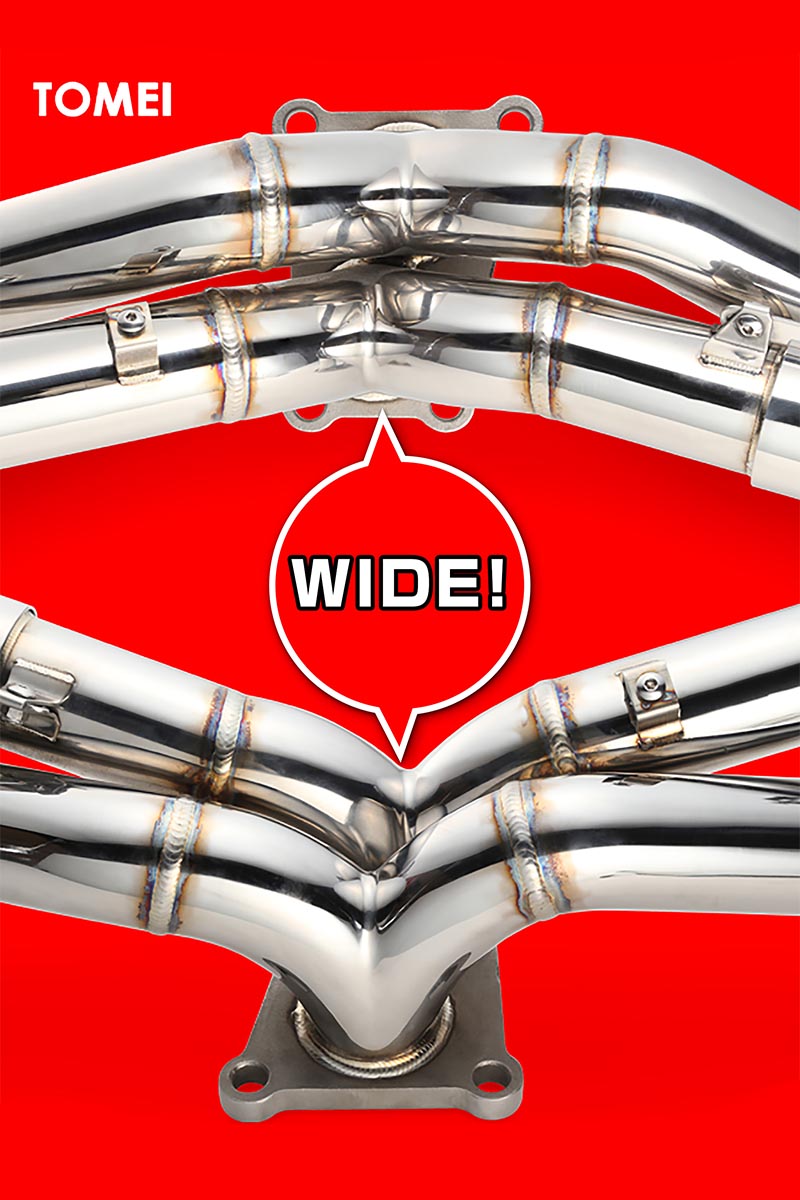 Tomei provides the option to go with equal or unequal length headers. Equal length headers will maximize exhaust gas flow through the header allowing you to get rid of any restriction through the exhaust. The design of unequal length headers gives that distinct rumble tone due to the tubing being offset in length causing the exhaust gasses to reach the turbo collector at slightly different times. Each set of headers will come with titan exhaust bandage to wrap your headers and help reduce heat soak.