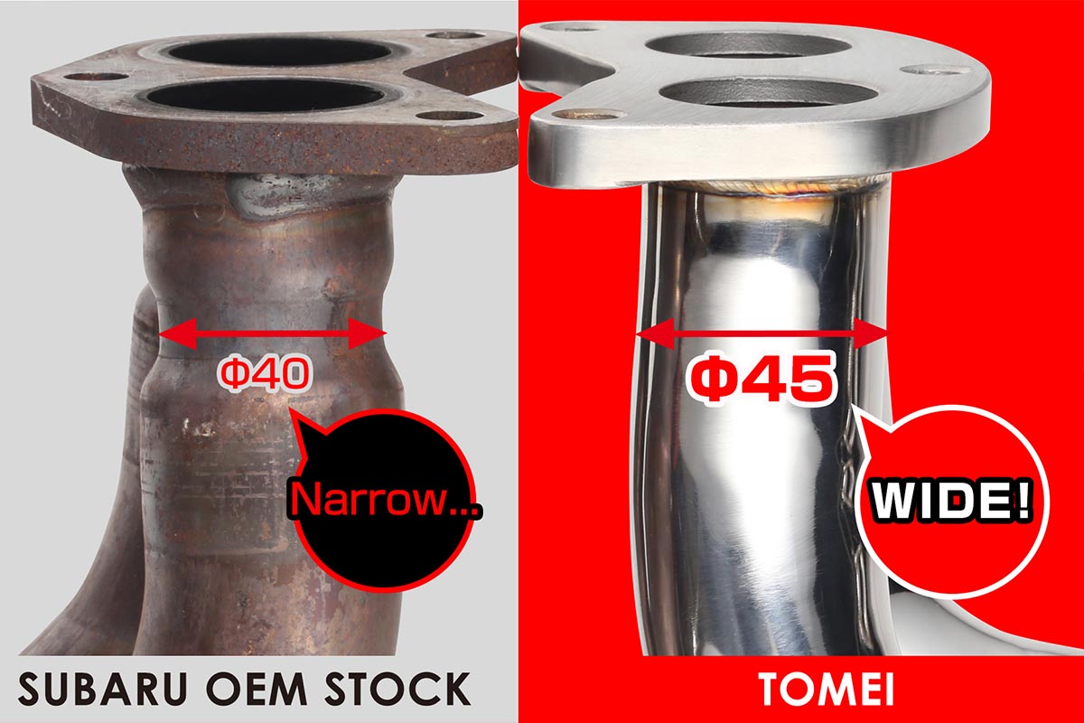 Recognizing this issue, Tomei developed two exhaust manifolds for the WRX that completely wakes up the FA20DIT under the hood. Eliminating all the restrictions from the factory and increasing the diameter of the piping promotes higher airflow through the manifold, thus improving efficiency. With these headers allowing the engine to flow more efficiently to the turbo, adding a little pep, and restoring that classic rumble.