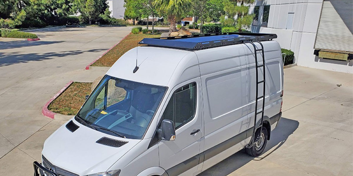 While a slim roof rack might not provide the same amount of storage capacity as a tall roof rack, the slimmer models help maintain decent gas mileage. The other main purpose of a roof rack is for mounting solar panels. Solar power is very popular for Sprinter van owners who spend extended periods in their van and need a solution for powering their electronics.