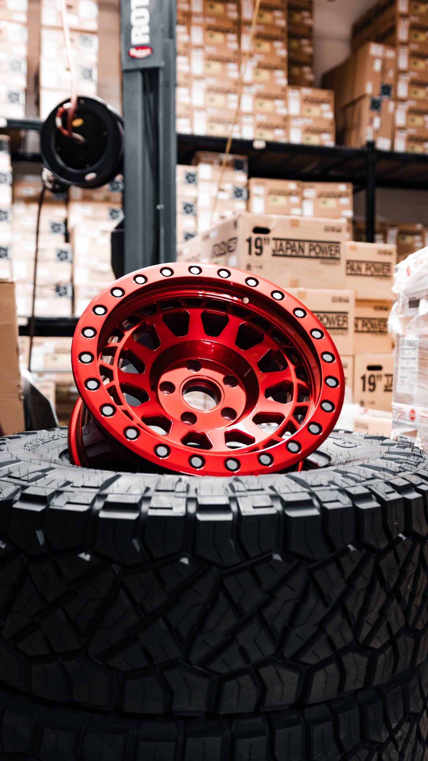 Black Rhino Wheels are known for manufacturing wheels that are stylish and provide off-road vehicles with an aggressive stance that they demand to conquer the toughest terrain. As seen in the photos below, the Black Rhino Primm Wheels with Candy Red w/Black bolts add a flare that’s been missing from your Jeep. This wheel’s rugged styling is the perfect match for your Jeep’s rugged and dependable aesthetics. You should know that the Black Rhino Primm Wheels would pair great with a 2.5 – 3″ lift and 35 – 37″ tires, the one featured in the photos below is available in our shop in 17-inch, 18-inch, and 20-inch sizes for 5-lug trucks, 6-lug trucks, and 8-lug trucks.
