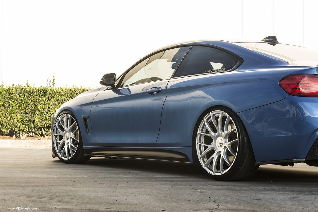 The owner recently added a set of wheels to this beautiful estoril blue 435I. These are the new Avant Garde M410 in silver. For a smaller BMW model, this car really pulls off the stance with the large 20″ wheels. Photos and Specs below: