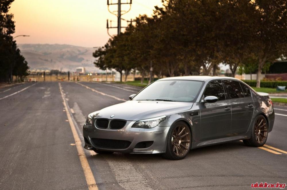 Our customer shared with us these images of his E60 BMW M5 sitting on Gloss Bronze HRE P43SC Conical Monoblok wheels in 20×9 +9 Front and 20×10.5 +28 at the Rear.