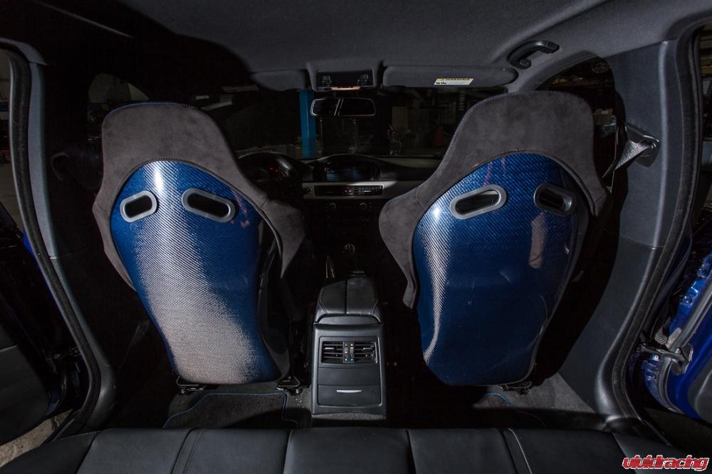 In addition to the KW’s, we put the perfect upgrade inside the car from our partners, Status Racing.  Using their Icon Seat Configurator, we created a new set of Ring GT-X seats with blue carbon fiber shells.  The seats were done in all black ultrasuede with matching blue stitching.  The Ring GT-X was built to accomondate more of a daily driver with up to a 38 inch waist while keeping them secure on and off the track.  Enjoy the video and all these photos.  If interested in any of these BMW Accessories, give us a call!