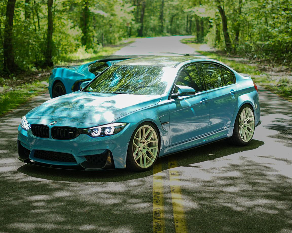 The stunning Yas Marina BMW F80 M3 featured here (IG: @i_be_danny) was treated to the 20-inch D09 wheel package from VR Forged. They measure 20×9.5 +20 at the front and 20×11 +37 at the rear with a recommended tire size of 265/30/20 and 295/30/20, respectively. The D09 series wheel showcases a very traditional mesh motorsports style perfectly suited to the luxury sports sedan. The strategic split Y-spoke design also features lightweight pockets and machining to deliver the ultimate in aesthetics, handling, and durability. The owner of this Yas Marine F80 M3, Danny A., chose a brushed finish for that classic contrast that never goes out of style. Other available color options include a stunning Gloss White, Satin Bronze, and Matte Black finish – all of which would still look incredible on this blue beauty.