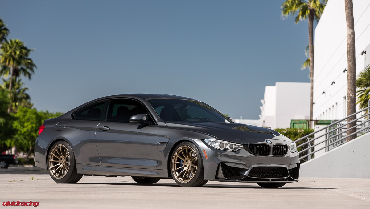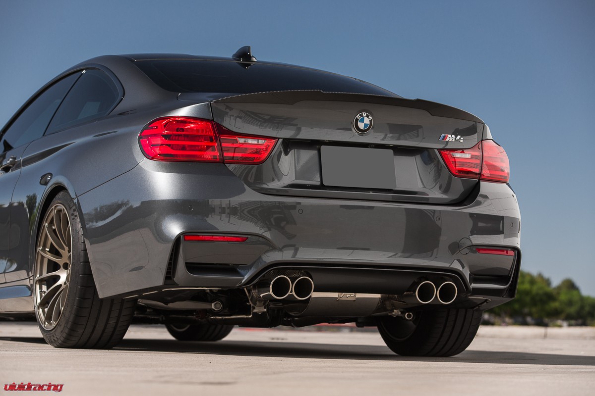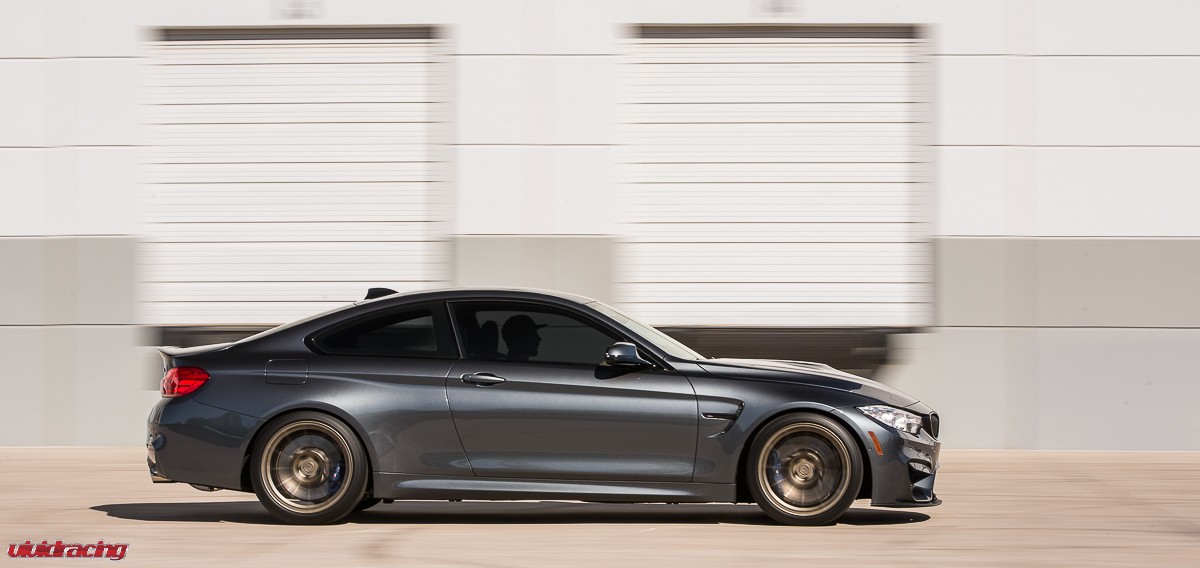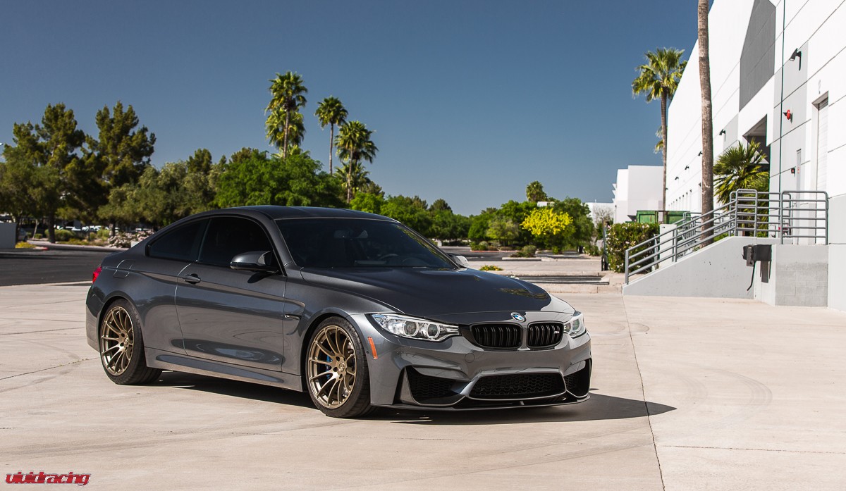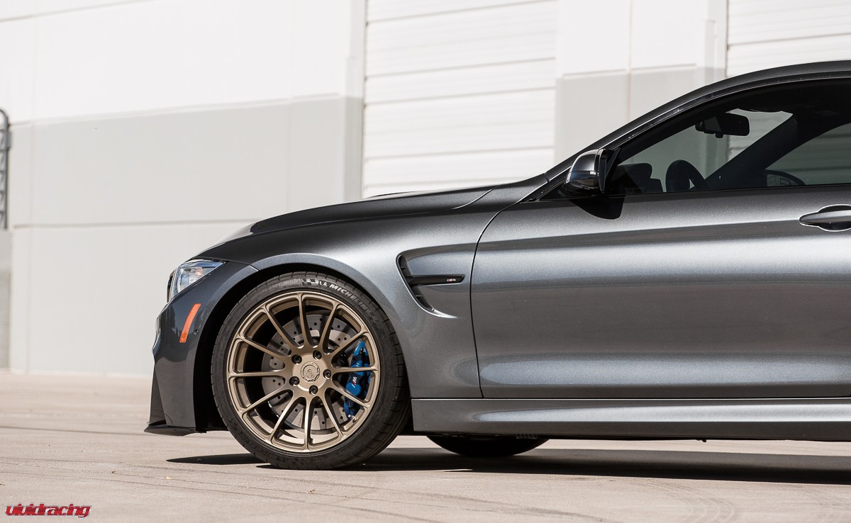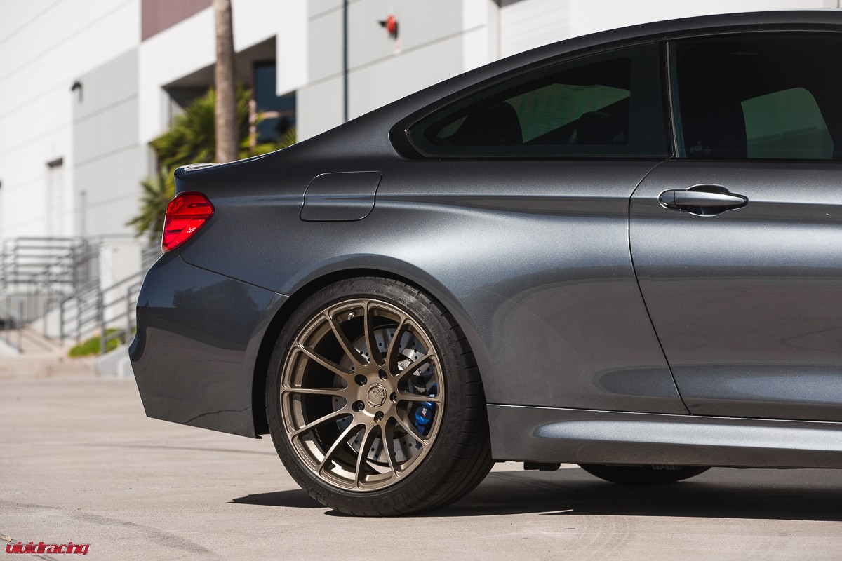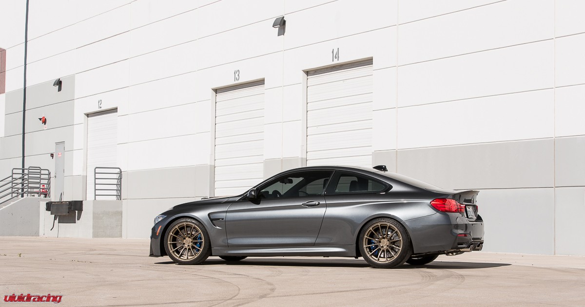 If you have not driven a BMW M4, go to your local dealer, pretend do have money, and test drive one. They are a blast! This is the BMW M4 that we have been doing R&D on for Agency Power. After doing our VR Tuned Tuning Box Kit, full turboback exhaust, and cold air intake kit, as well as lowered on H&R springs, it was wheel time. The owner of this car is actually a rally car driver and respects the difference of function over style. So in this case, he chose to keep it classy and functional with a set of BC Forged 1 piece 19 inch wheels. The RS43 monoblock wheel is finished in a nice matte bronze which is a perfect contrast for the M4’s sleek lines and paint color. The wheels are using OEM Michelin tires and are done in a 19×9 and 19×10.5 fitment with a conservative offset. We did a mini photoshoot on the car so enjoy the pictures and view more BC Forged Wheels here.