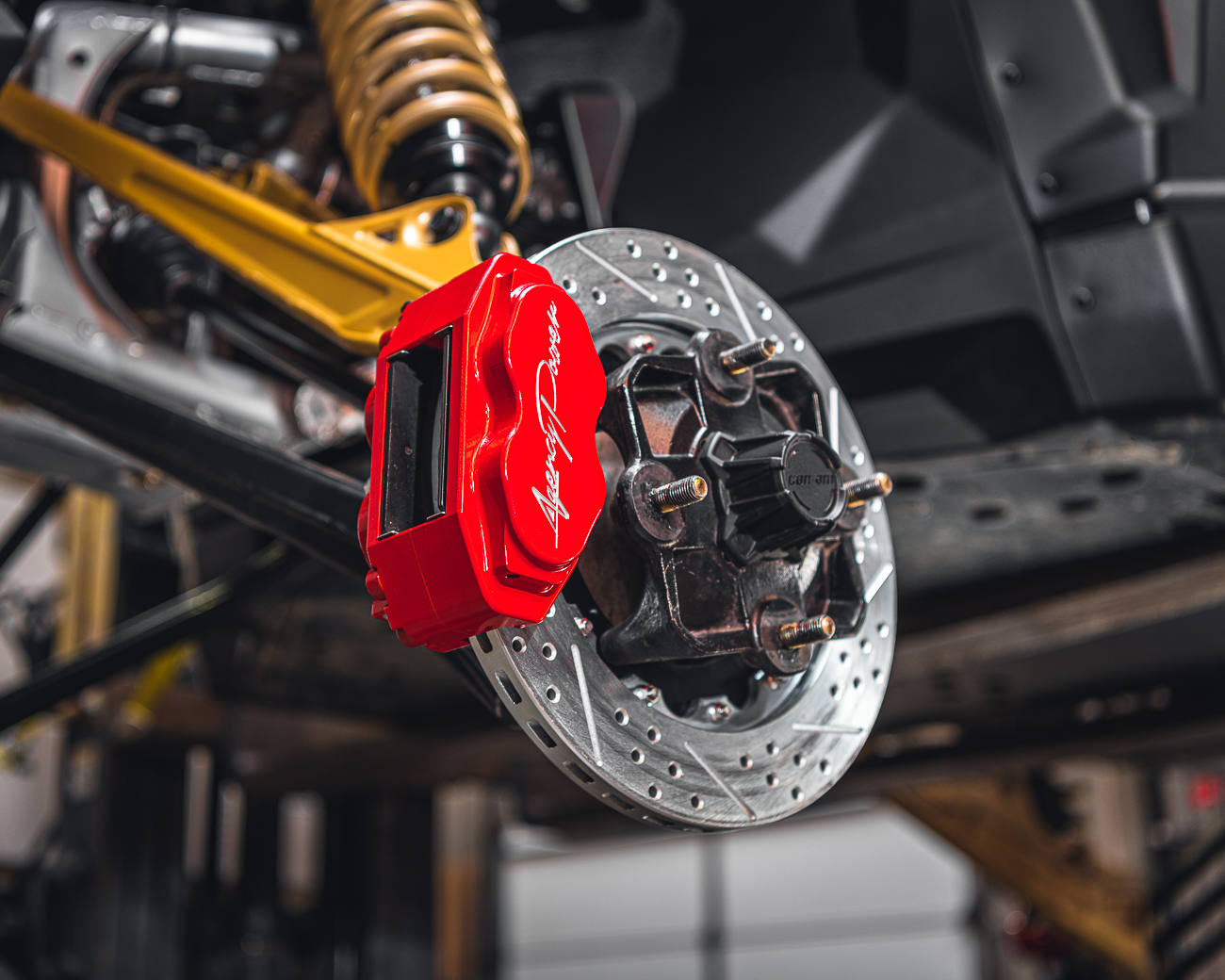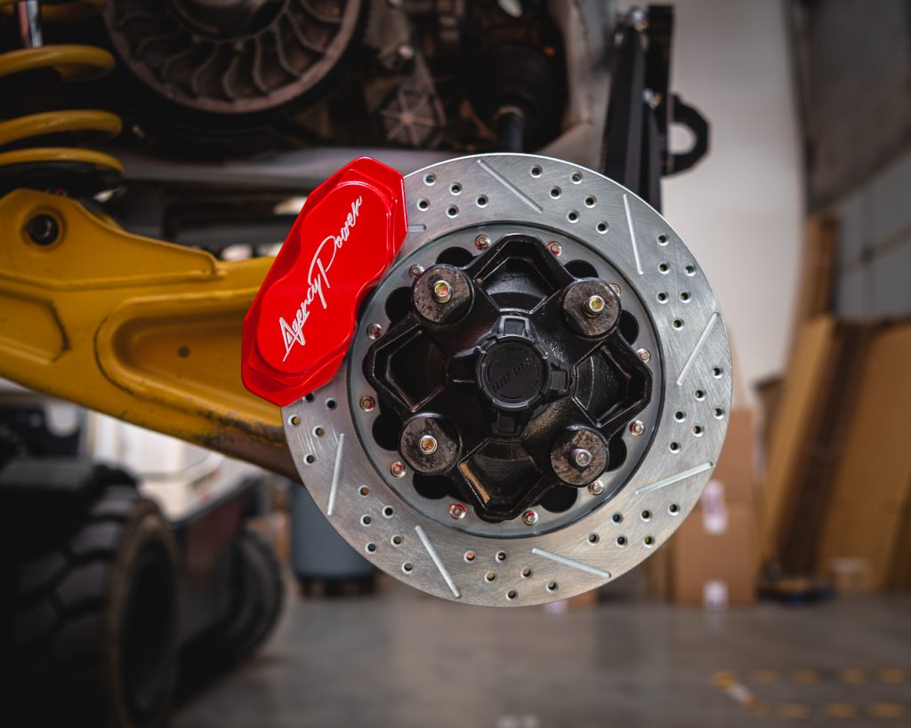A Big Brake Kit for the Can-Am Maverick X3 is the modification you never thought about but absolutely need! If you are a Can-Am X3 owner, you already know that the brake pedal is soft and these high horsepower machines do not stop like they should. As a premiere manufacture of UTV products, Agency Power has gone to extreme measures to develop the best 4 wheel big brake kit available for the Can-Am Maverick X3. After extensive testing, we have engineered a brake kit that is a direct bolt-on, provides a proper balanced brake system, and aesthetically looks amazing behind the wheels.