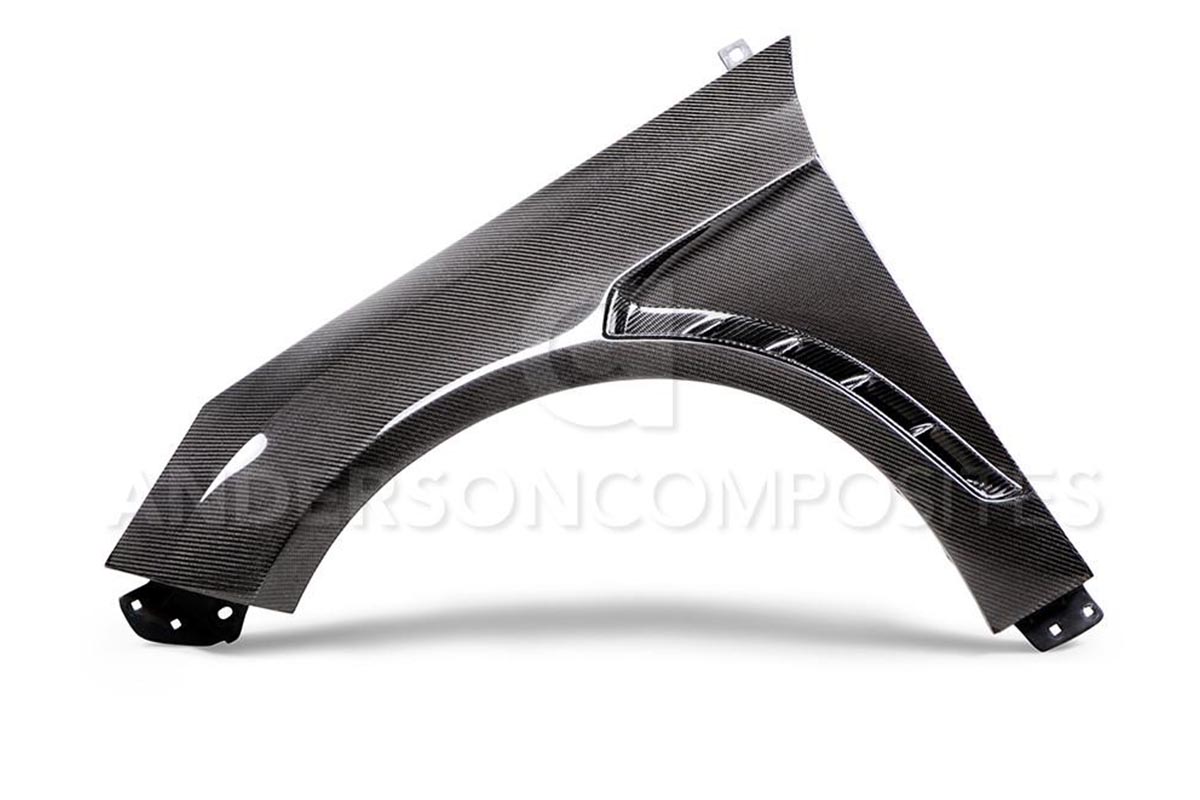 Anderson Composites developed full carbon fiber replacement fenders, hoods, doors, and other aero components for the Ford Focus RS. With the installation of these panels, owners can experience drastic weight savings and achieve faster lap times without even touching the incredible stock performance of the RS. Shedding weight improves power-to-weight ratio which in turn increases speed.