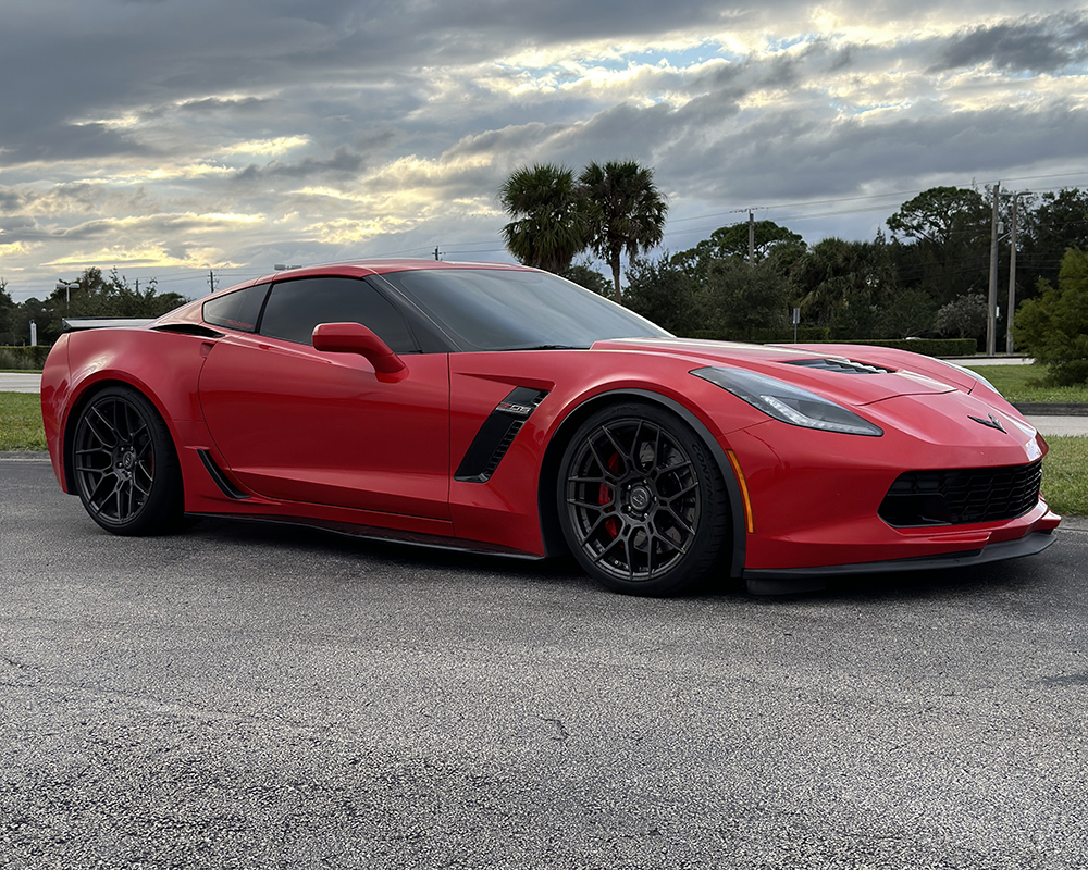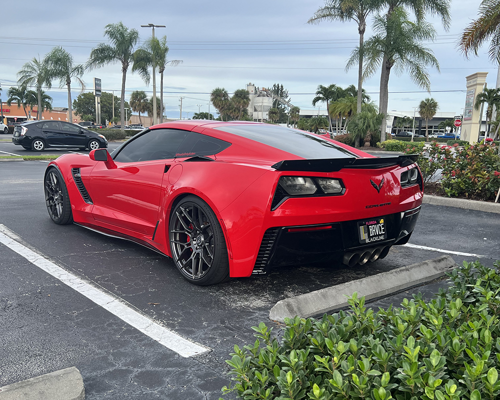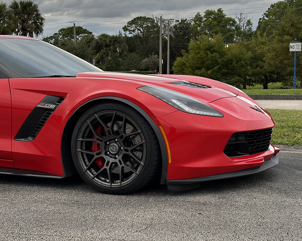 The Corvette C7 Z06 has become extremely popular amongst younger enthusiasts because of its high horsepower and affordable price. With some simple mods from the Vivid Racing Store, these are easily 10 second cars! Our customer Aiden, a popular TikToker, wanted to get a set of forged wheels for his Z06. So he connected with us and got hooked up with a set of our VR Forged D09 wheels in gunmetal. The front wheels are a 19×10 and the rear are a 20×12.5. With a price point that makes a quality forged wheel attractive, these were a no brainer for Aiden. You can tell from his videos, he is absolutely pumped!