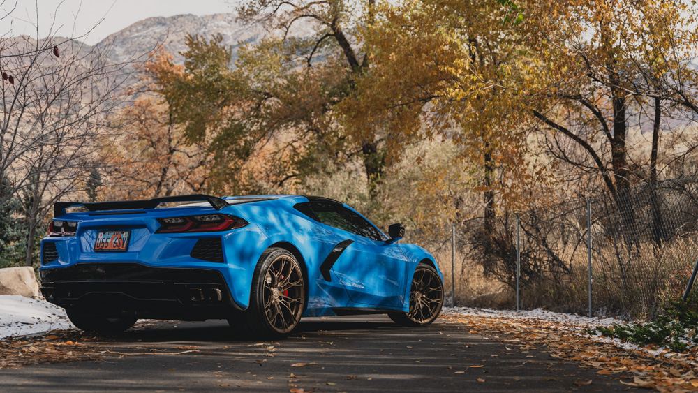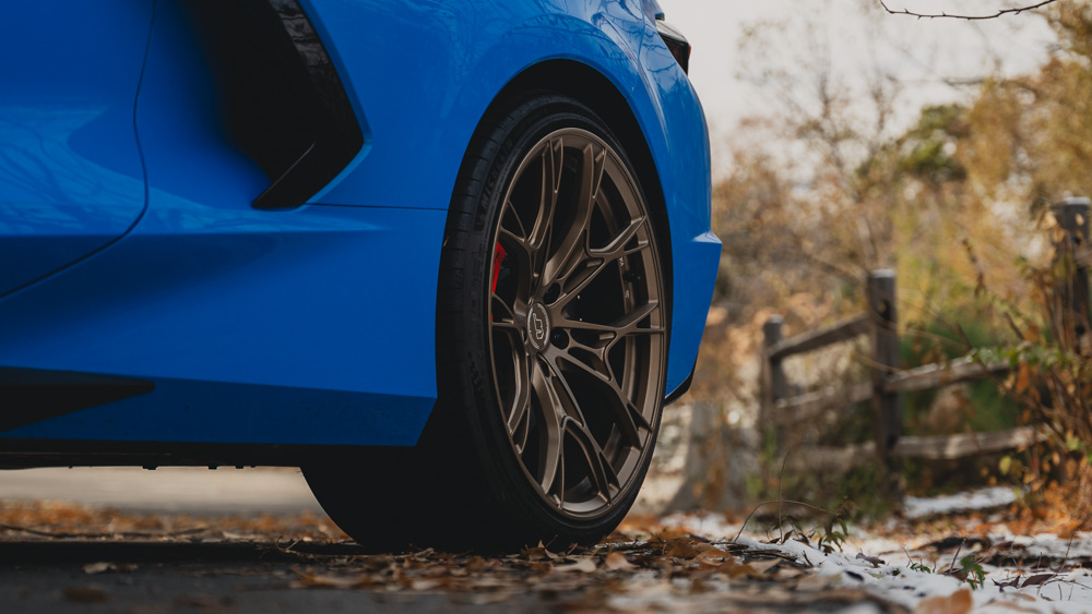 Our friend and fellow road rallier from Utah hooked up his Rapid Blue Corvette C8 with a set of our VR Forged D01 wheels in bronze. The blue and bronze combo was meant to be! The front wheels are a 20×9.5 +38mm and the rear are a 21×12.5 +58mm. Tires that get added are some serious rollers with Michelin Pilot Sport 4 S 255/30ZR20 in the front and Michelin Pilot Sport 4 S 325/25ZR21 in the rear.