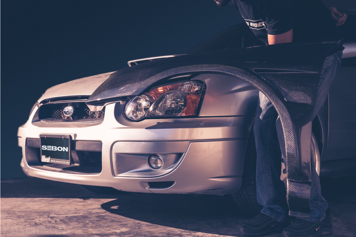 The Subaru Impreza WRX offers comfort, attractive styling, advanced tech features, and the brand’s high-performance boxer engine. It’s an all-around great buy for the money and the aftermarket houses virtually endless options to mod the WRX to your heart’s desire. Our customer, Hae-Seung Robinson (IG @MassAutoDigital), recently purchased a set of Seibon carbon fiber front fenders for his 2004 Subaru Impreza WRX and is pleased with the end result.