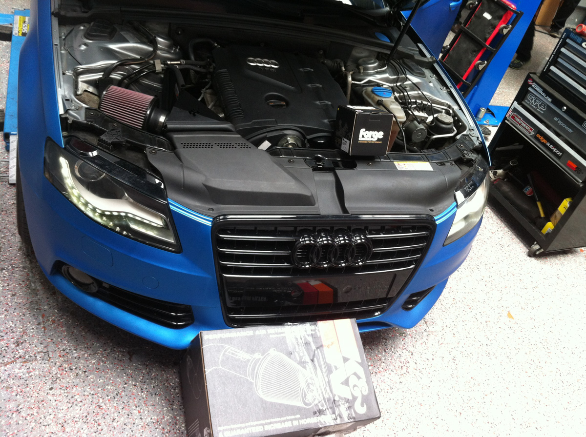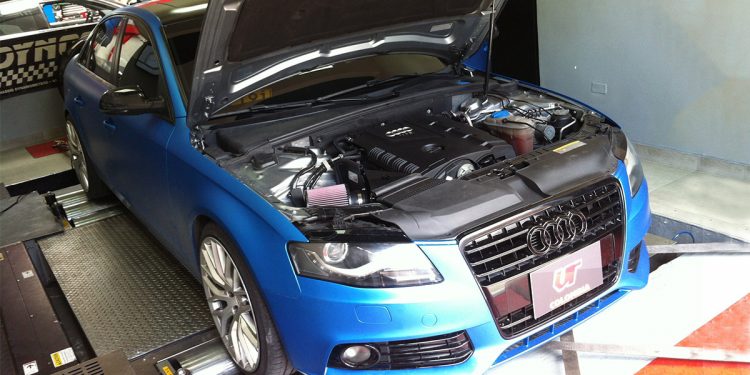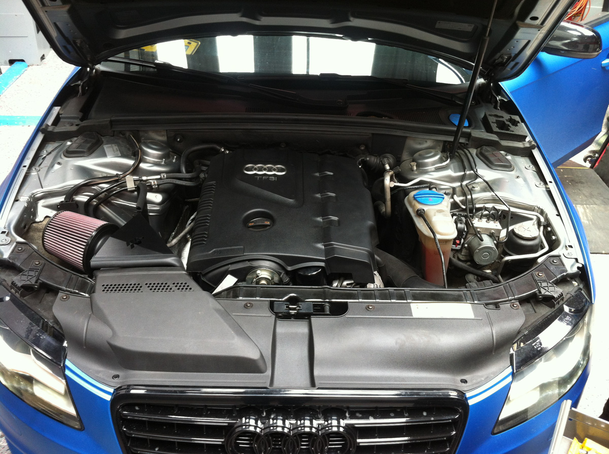 Vivid Racing is a big name in the Audi/VW market and we’ve had our fair share of these cars. Volkswagen’s turbocharged engines are well known for responding terrifically to simple modifications. A turbocharger works by pushing more air inside of the engine. If you can feed the turbocharger more air, it can push more of it into the intake. This is exactly how an aftermarket intake increases horsepower. This particular B8 A4 was equipped with a K&N Typhoon Intake. K&N is a huge name in the aftermarket intake market, so we expected pretty solid gains from their A4 cold air intake system.