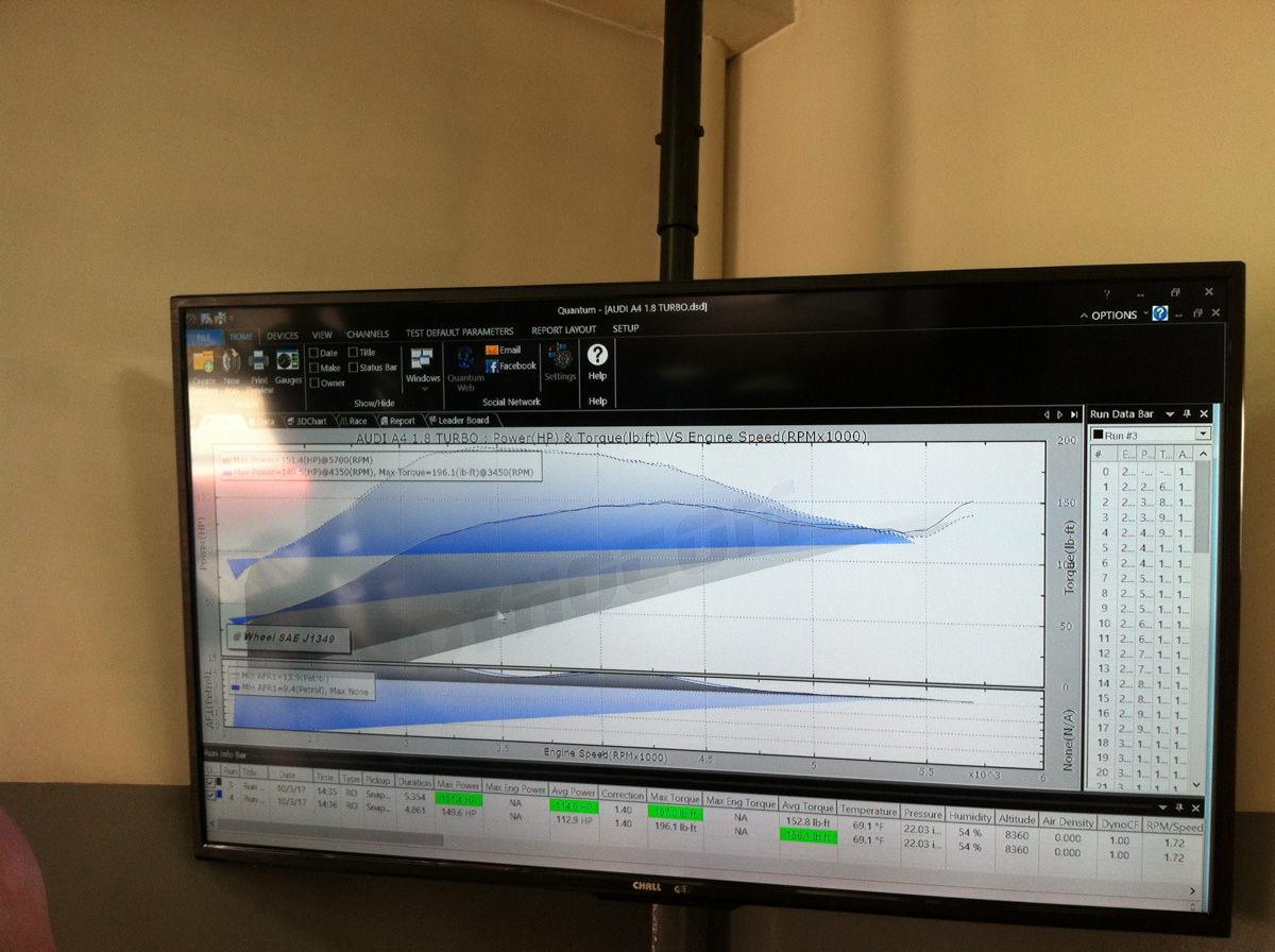 In addition to the cold air intake, we installed a Forge Motorsports BOV Kit to give this A4 more sound. If you’re driving a turbocharged car, then you want to be able to hear all those awesome turbo sounds. After installing every, the A4 was strapped to the dyno for testing purposes. These parts were sold and installed by our Columbian representatives, Vivid Racing Columbia.