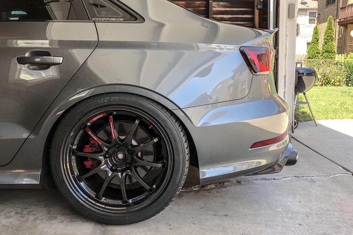 Wide arches over the exhaust fit the quad carbon fiber exhaust tips perfectly and smooth off the rear of the vehicle. The sporty 10-spoke design of the CE28SL completes the performance look and helps deliver all that power to the ground. Each modification was meticulously chosen to personalize this S3 build without overdoing the aesthetics department.