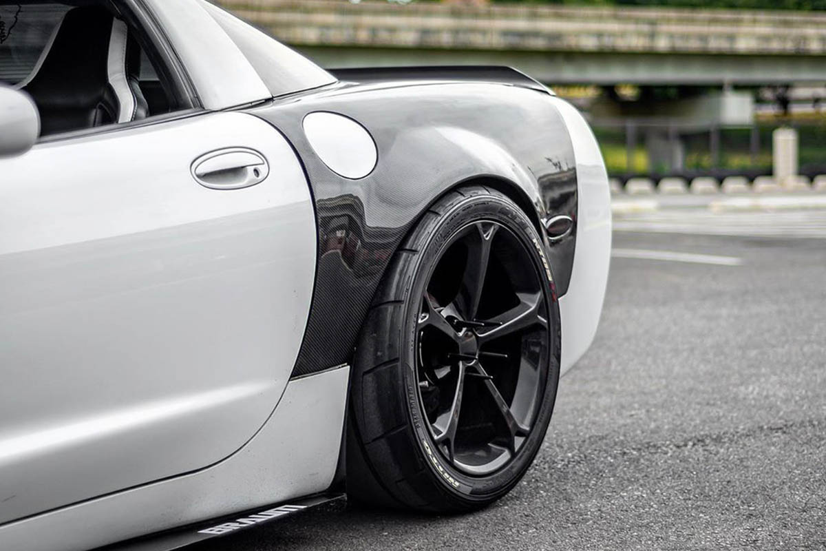 Our customer @kong_c5 not only wanted to update the interior of his C5 with the stylish Braum seats but also wanted the benefits of being planted while driving. This C5 is equipped with two Braum Racing Elite Series in black and white leatherette to match the white exterior with raw carbon fiber widebody.