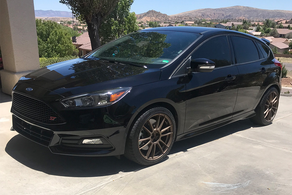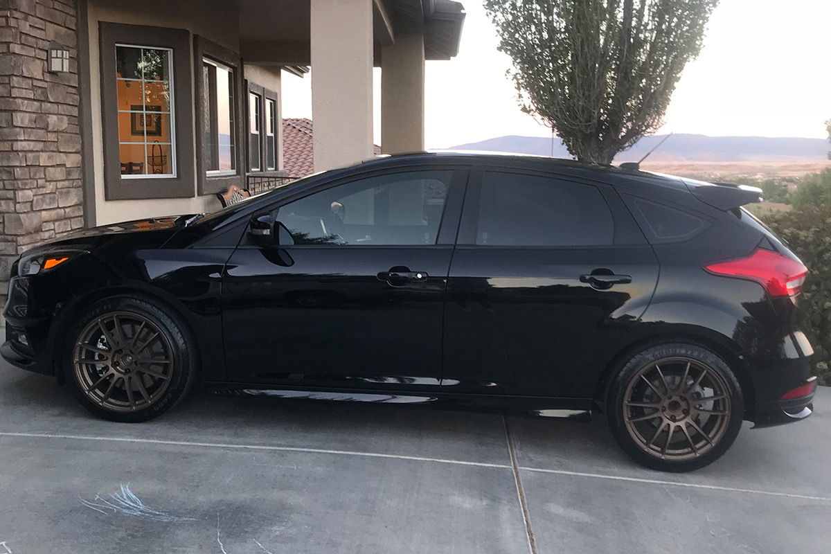 One of our customers, who you can follow on Instagram at @ryan_a_klotz, just picked up a set of Gram Lights 57Xtreme wheels in Bronze. The wheels are sized in 18×8.5 with a 38mm offset, which is nice and aggressive on the Focus ST, without causing wheel rub. The bronze pops nicely against the black paint of this Focus ST, but it isn’t too “in your face” looking. Follow our customer on Instagram @ryan_a_klotz and be sure to give us a follow too @vividracing.