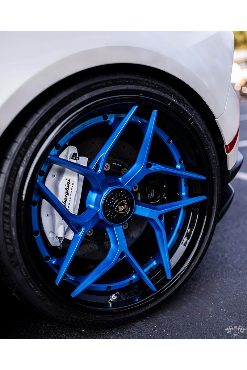 The rest of Brian’s Huracan features tasteful modification all around. Each of which personalizes his vehicle and compliments the overall aesthetic of the vehicle. One major install that was done was the Brixton Forged PF5 Targa Series three-piece wheels.
